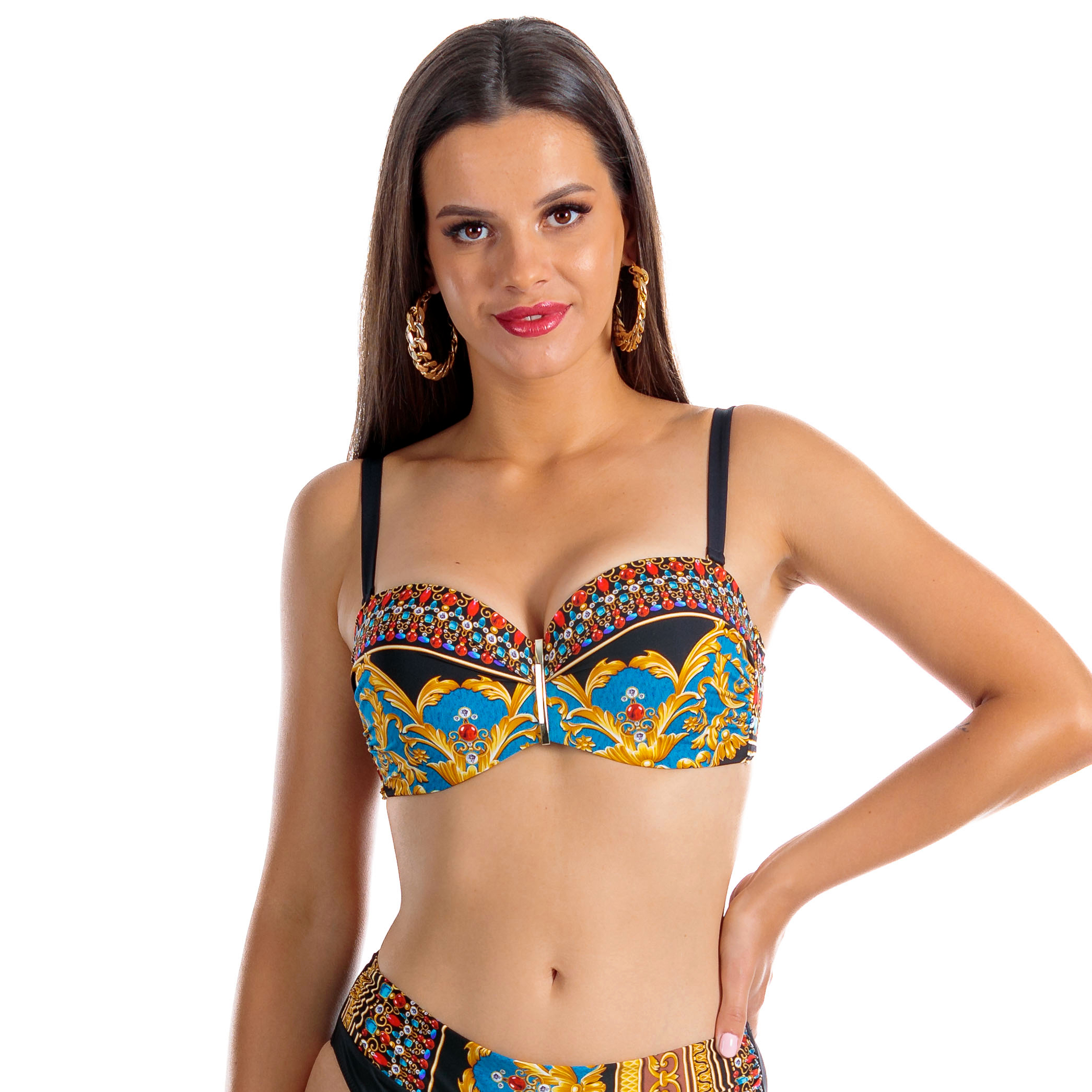 Wzorzysty biustonosz kąpielowy z push-up dla małego biustu ale nie tylko…: