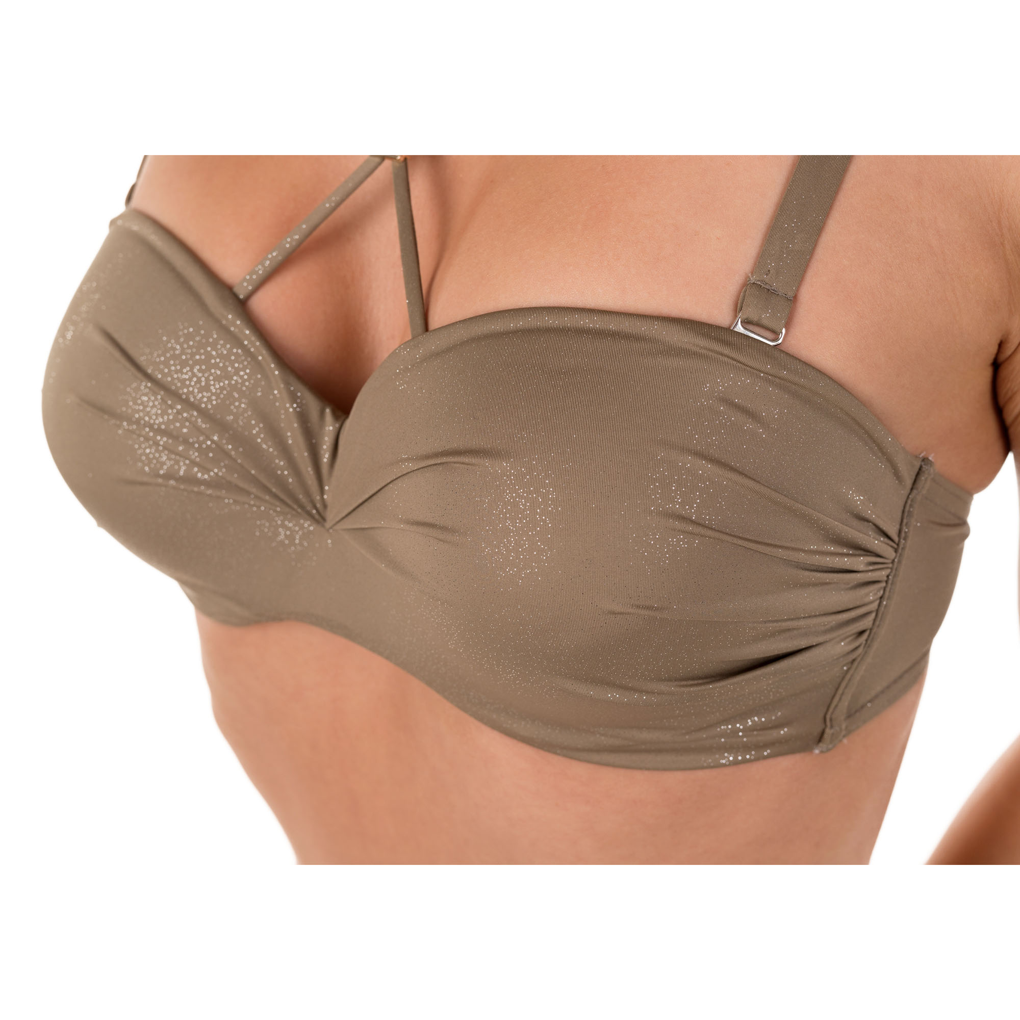 To coś dla kobiet, których sylwetkę potocznie nazywamy „klepsydrą”; ponieważ brązowy, mocno zabudowany stanik z dodatkiem brokatu przełamie stonowaną nudę i sprawi, że każdy zechce wzrokiem odkrywać twoje ciało. Jeśli nie masz zbyt kobiecych kształtów i chcesz poczuć się bardziej kobieca, Brigitt E w tej wersji kolorystycznej sprawi, że poczujesz jak tryskasz kobiecością przechadzając się po plaży, pijąc zimny koktajl w przybrzeżnej knajpce, albo opalając się na leżaku.