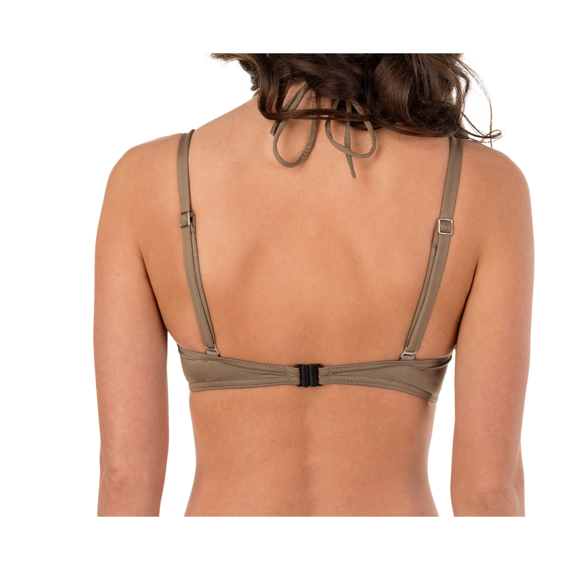 Usztywniana miseczka, regulowane ramiączka oraz efekt push-up ładnie ukształtują linię waszych piersi. Podniosą je, uwydatnią, albo po prostu pozwolą aby w każdej sytuacji były na swoim miejscu – czy to podczas intensywnego pływania, biegania, czy podczas spaceru. Ramiączka można również odpiąć, dzięki czemu sylwetka stanie się bardziej interesująca, a jednocześnie zapobiegnie to jasnym, nieopalonym paskom wzdłuż ramion. Dodatkowym atutem są fiszbiny, dzięki którym biust nie będzie się przemieszczał. Kostium jest zapinany z tyłu, ale także wiązany na szyi, co sprawia że jest wyborem jeszcze ciekawszym.