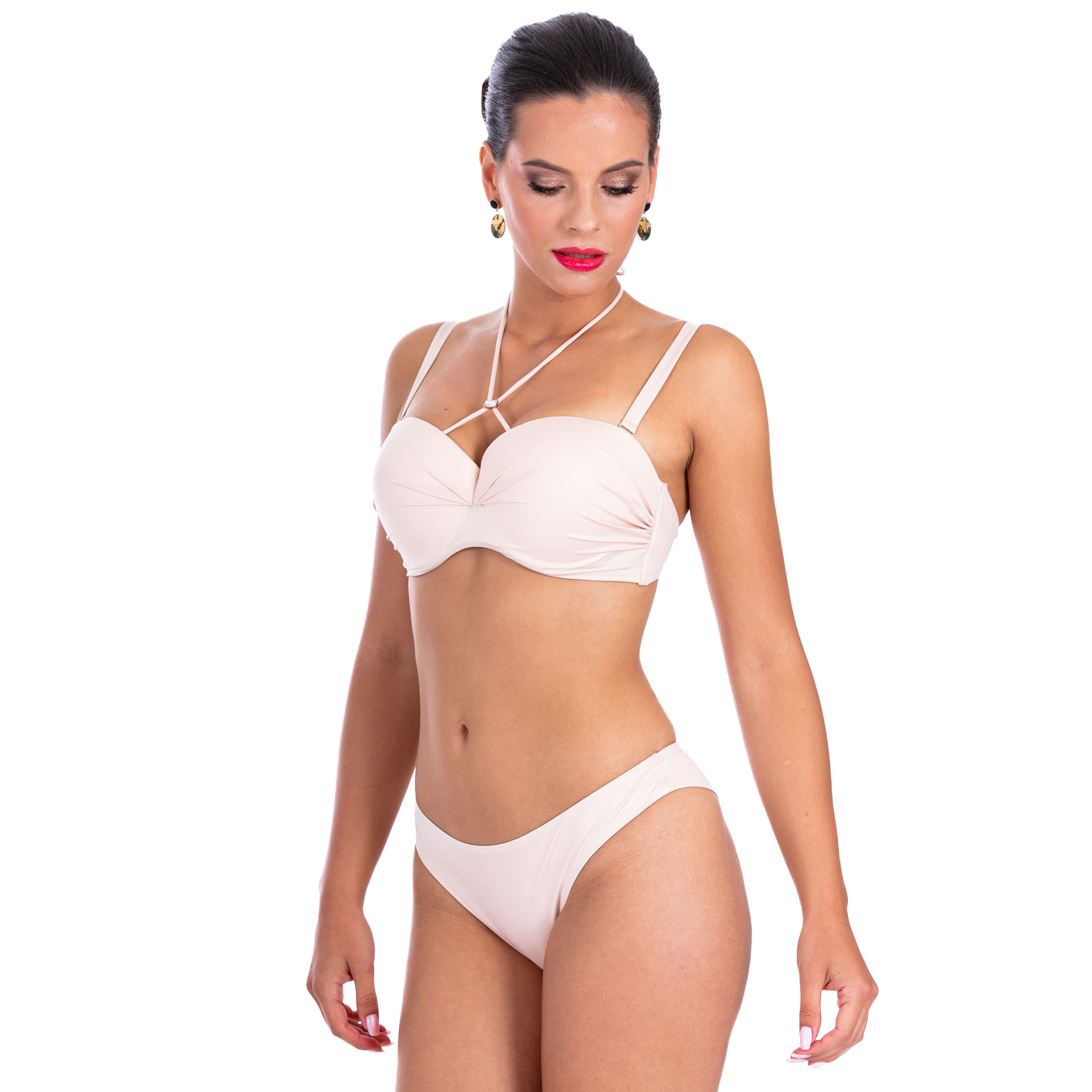Dwuczęściowy kostium kąpielowy Brigitt E charakteryzuje się nie tylko praktycznością, ale również modnym designem. Wyjątkowy odcień L16 dodaje uroku i pozwala wyróżnić się na tle innych. Ozdobne wiązanie na szyi daje efektowny akcent, który przyciąga wzrok i podkreśla kobiecość.