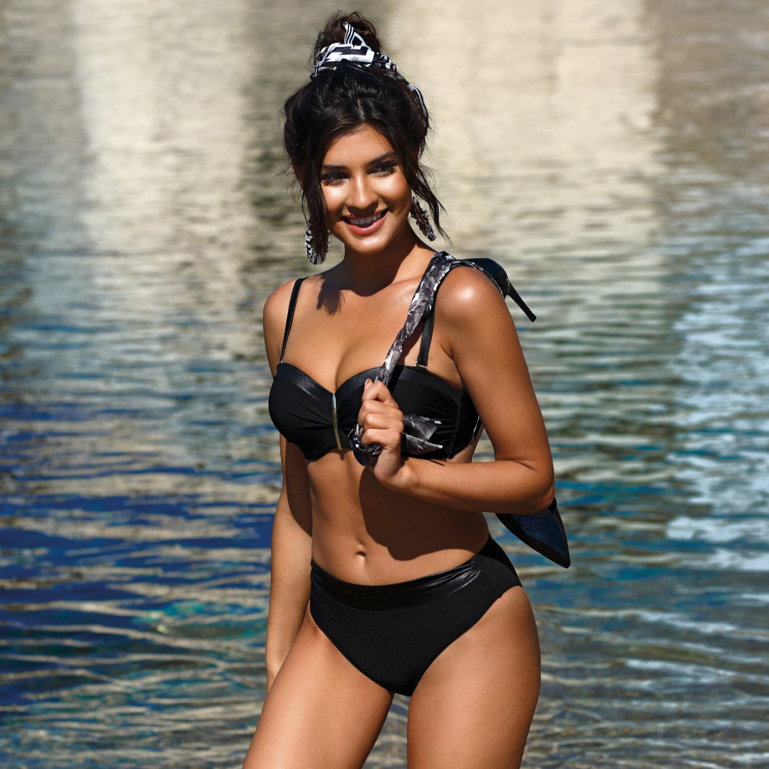 Dwuczęściowy strój kąpielowy Brigitt Z zachwyca fasonem i rozbudza tęsknotę za wakacyjną wolnością. Odkryj zmysłowość czerni i poczuj relaksującą moc słońca.