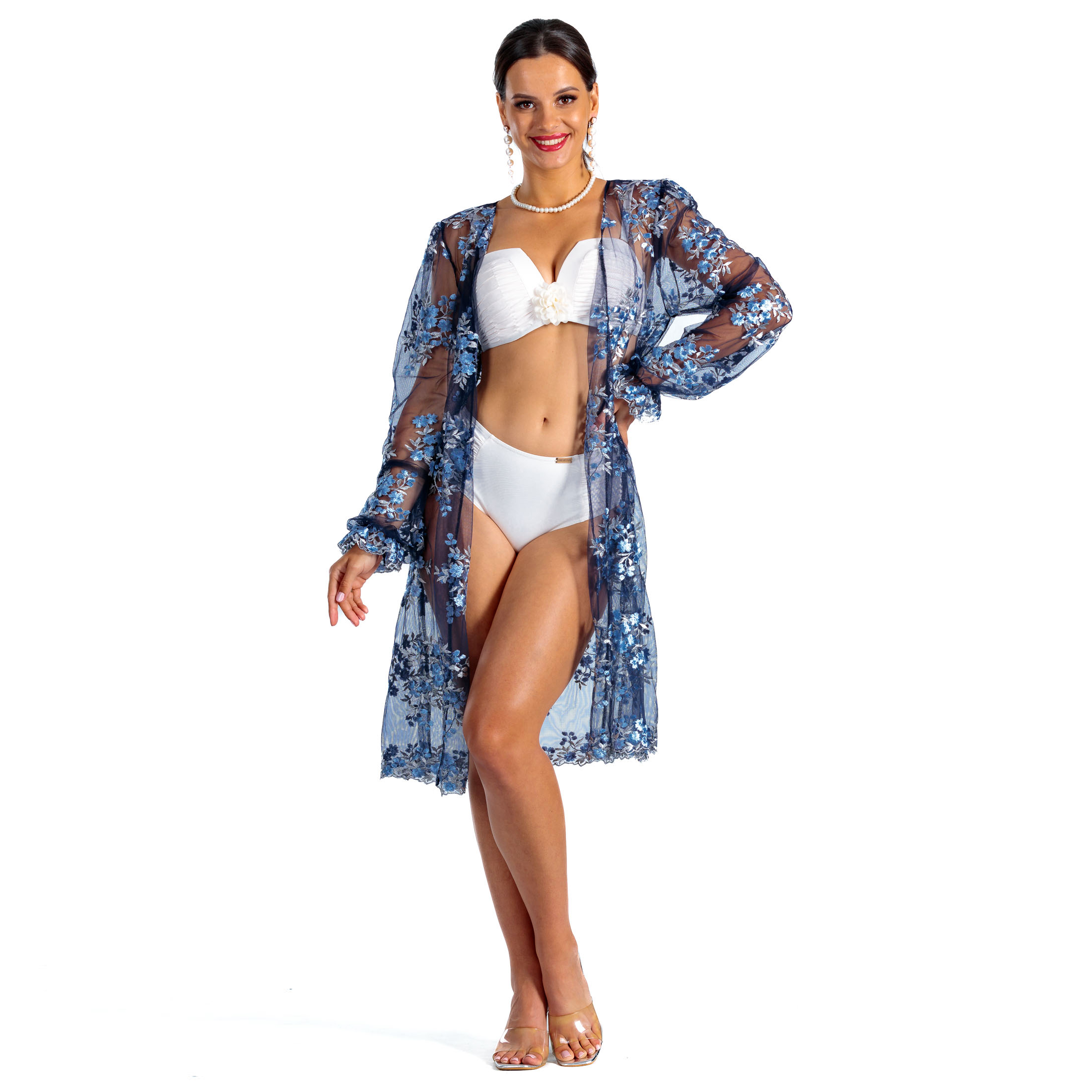 Centralnym punktem tego wyjątkowego modelu jest subtelna kwiatowa aplikacja, która dodaje całości romantycznego charakteru. To nie tylko element dekoracyjny – to symbol kobiecości i elegancji, który sprawia, że każde wyjście na plażę staje się wyjątkowym wydarzeniem.