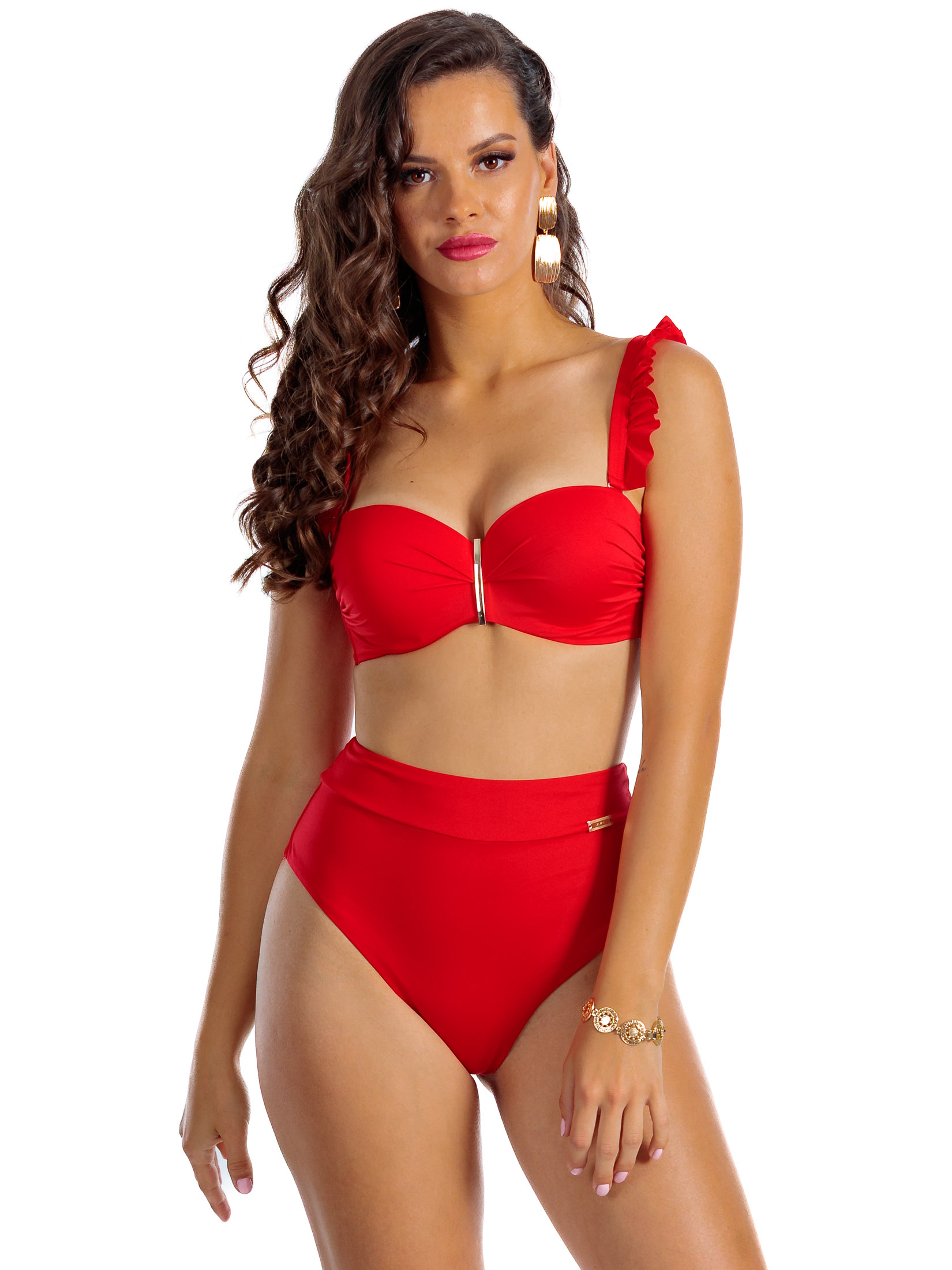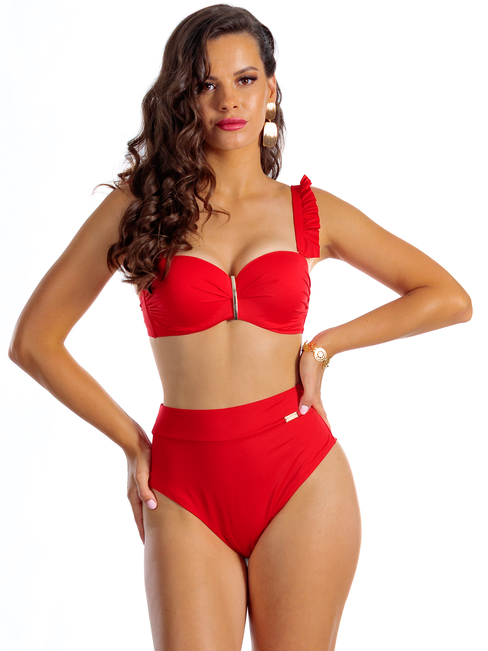 Czerwony biustonosz doskonale komponuje się z całą kolekcją majtek kąpielowych z naszej oferty w tym kolorze ale też np. z czarnym dołem. Wszystkie elementy utrzymane są w tej samej intensywnej czerwieni, dzięki czemu możesz stworzyć set idealnie dopasowany do Twojej sylwetki i preferencji. Niezależnie czy wybierzesz majtki z wysokim stanem czy klasyczne bikini – całość będzie prezentować się zjawiskowo.