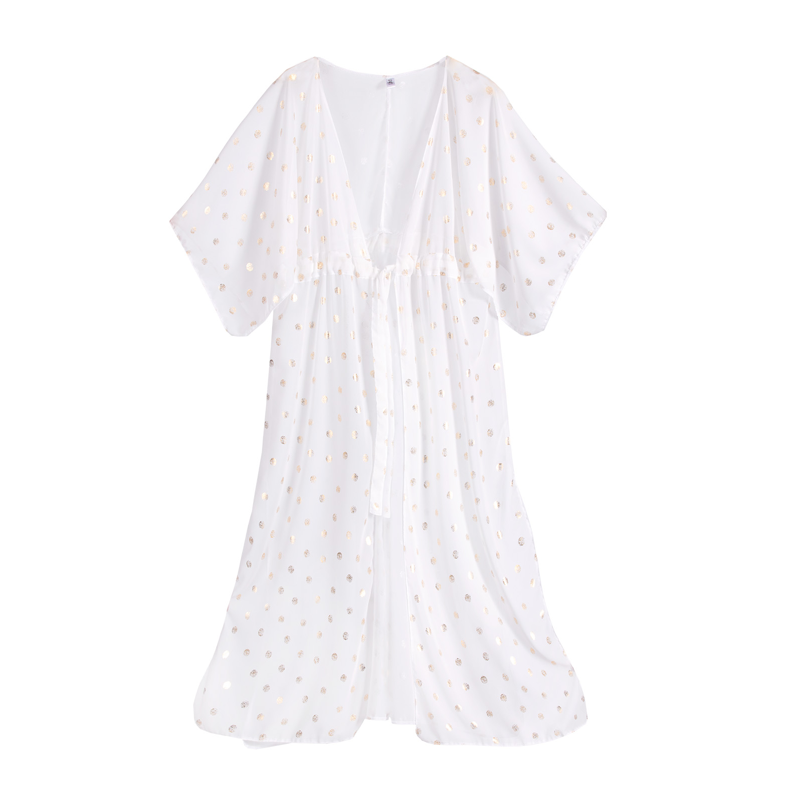 Długi, zwiewny fason nie tylko doskonale osłania, ale też magicznie wysmukla sylwetkę. Szerokie, kimono-style rękawy zapewniają swobodę ruchów i dodają całości lekkości. Przewiązanie w talii pozwala na idealne dopasowanie do każdej figury, podkreślając jej atuty.