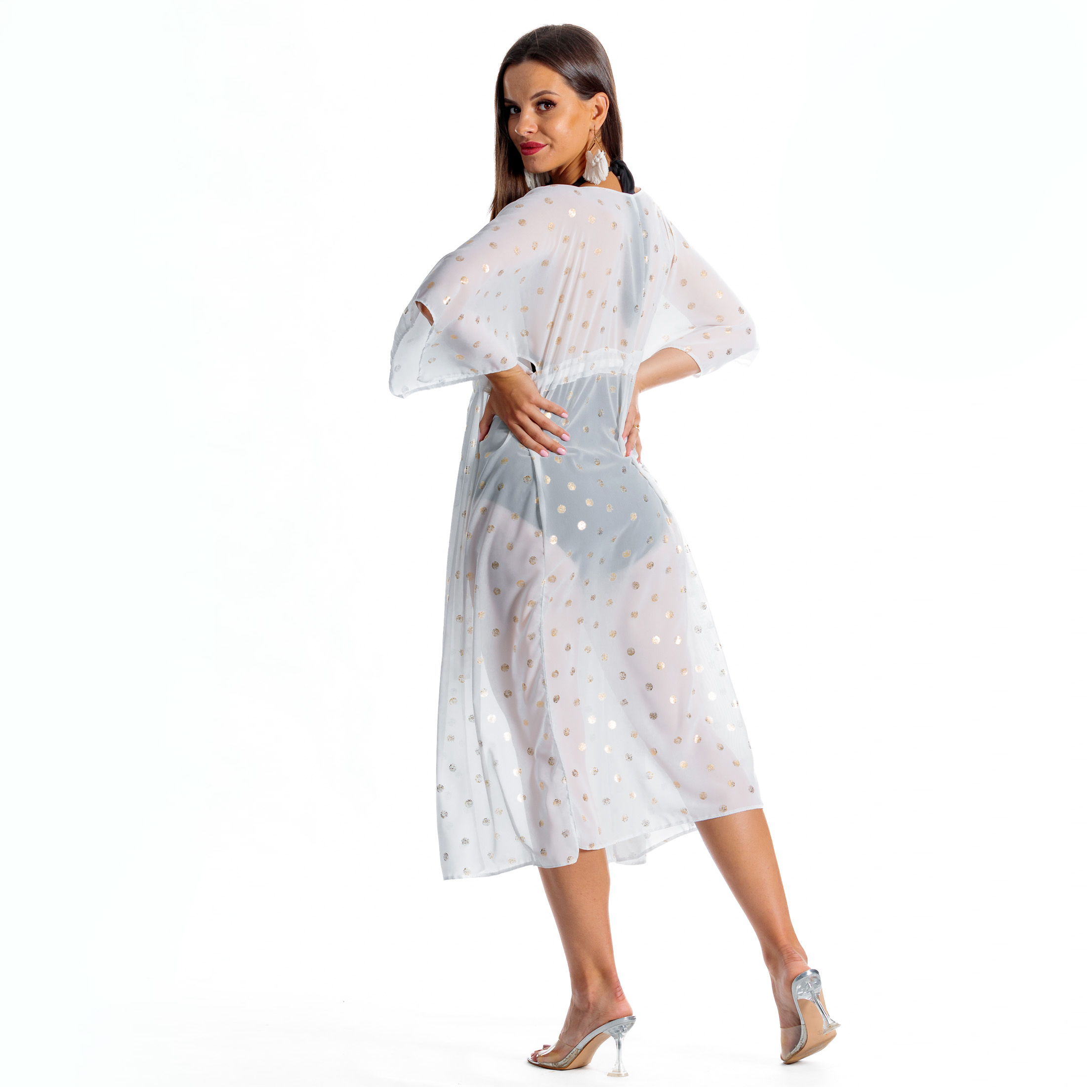 Luksusowa narzutka na strój kąpielowy z błyszczącymi akcentami