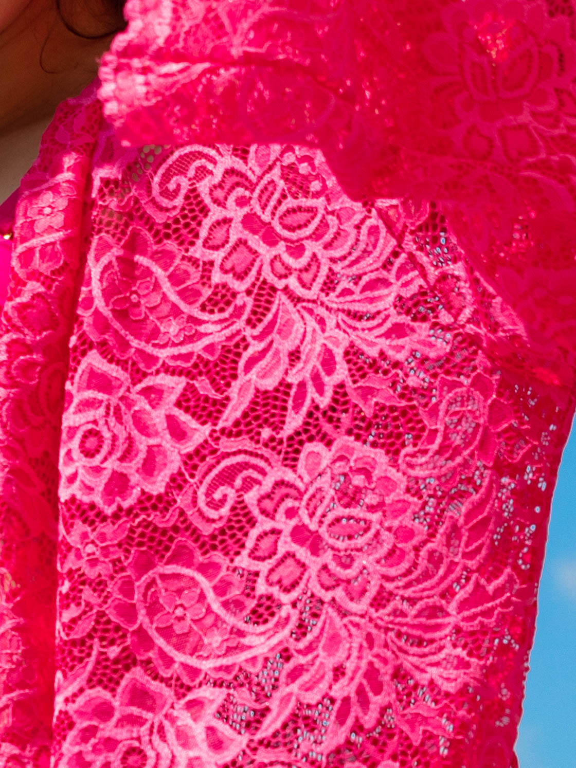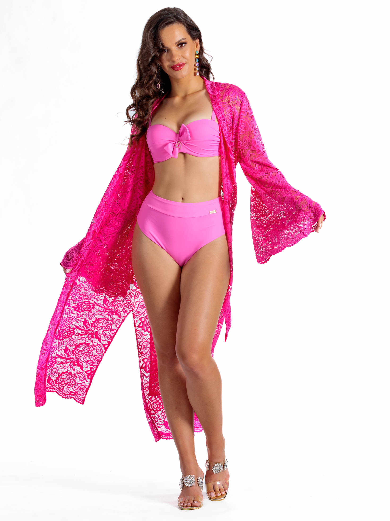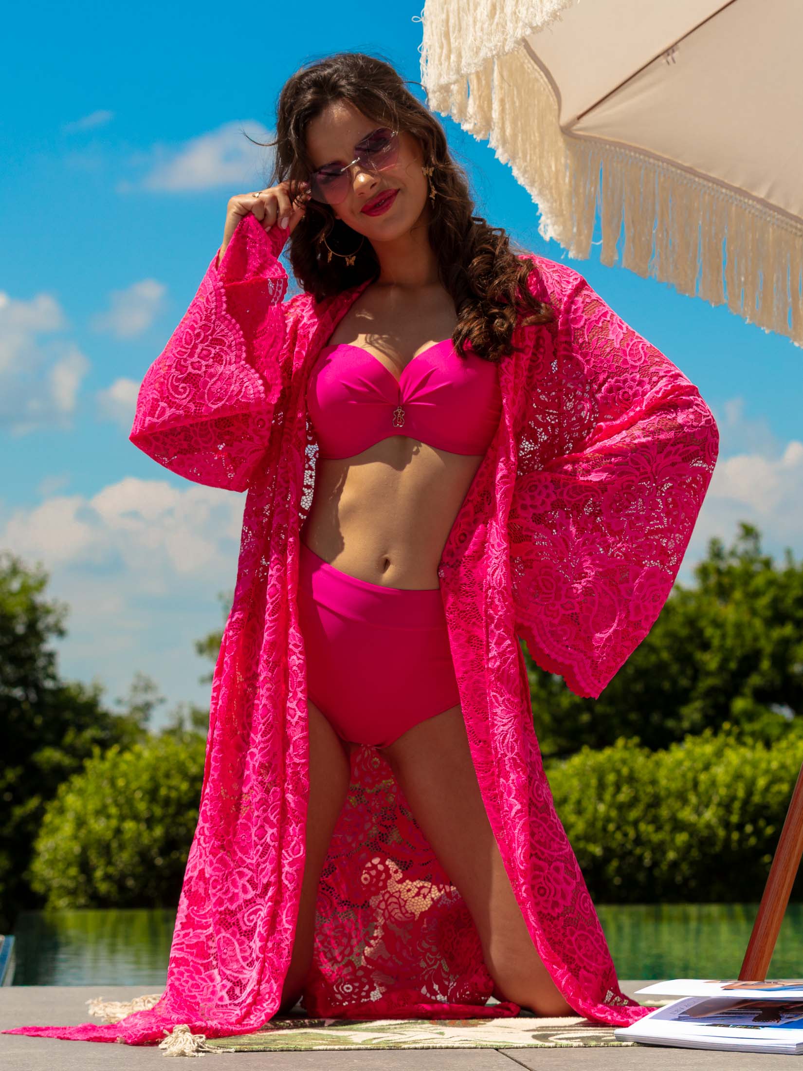 Odkryj kwintesencję plażowej elegancji w naszej ekskluzywnej, różowej narzutce. Ten ażurowy szlafrok plażowy to nie tylko okrycie – to statement piece, który przemieni Twoje plażowe stylizacje w prawdziwe dzieła sztuki. Delikatna koronka w intensywnym różowym odcieniu sprawia, że będziesz przyciągać zachwycone spojrzenia podczas spacerów nadmorską promenadą czy relaksu przy basenie.