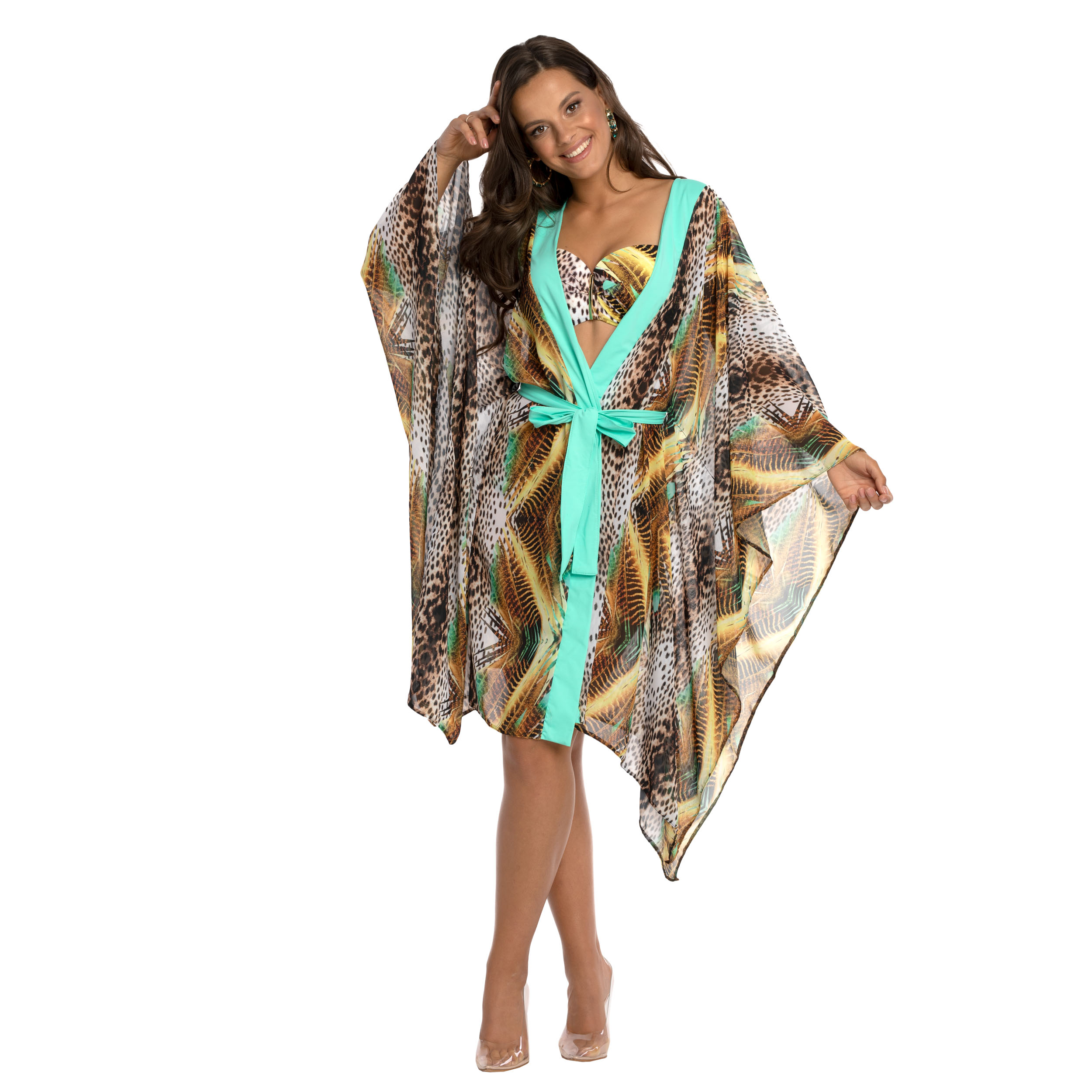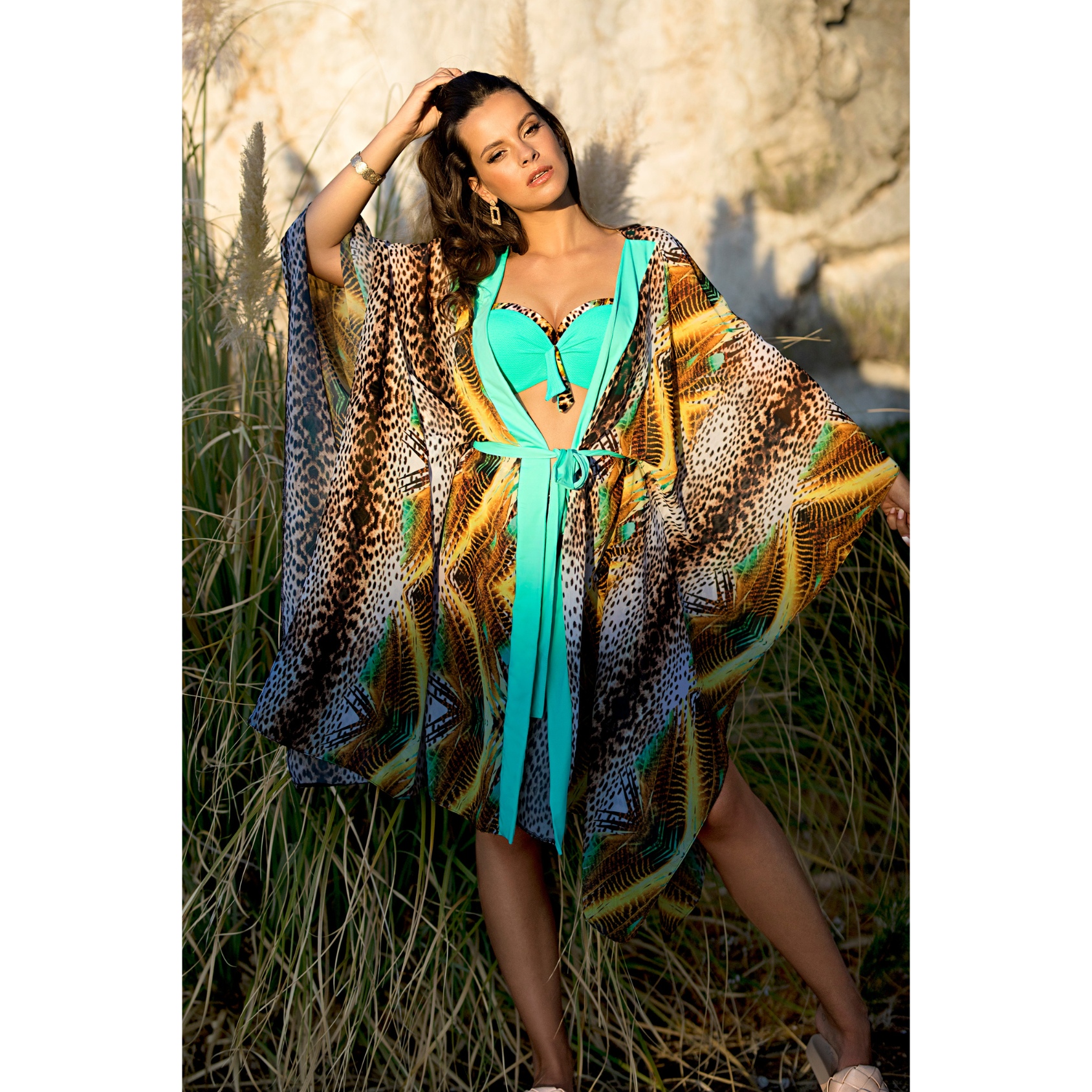 Kimono / F11 – wzorzyste wiązane kimono plażowe w zwierzęcy wzór