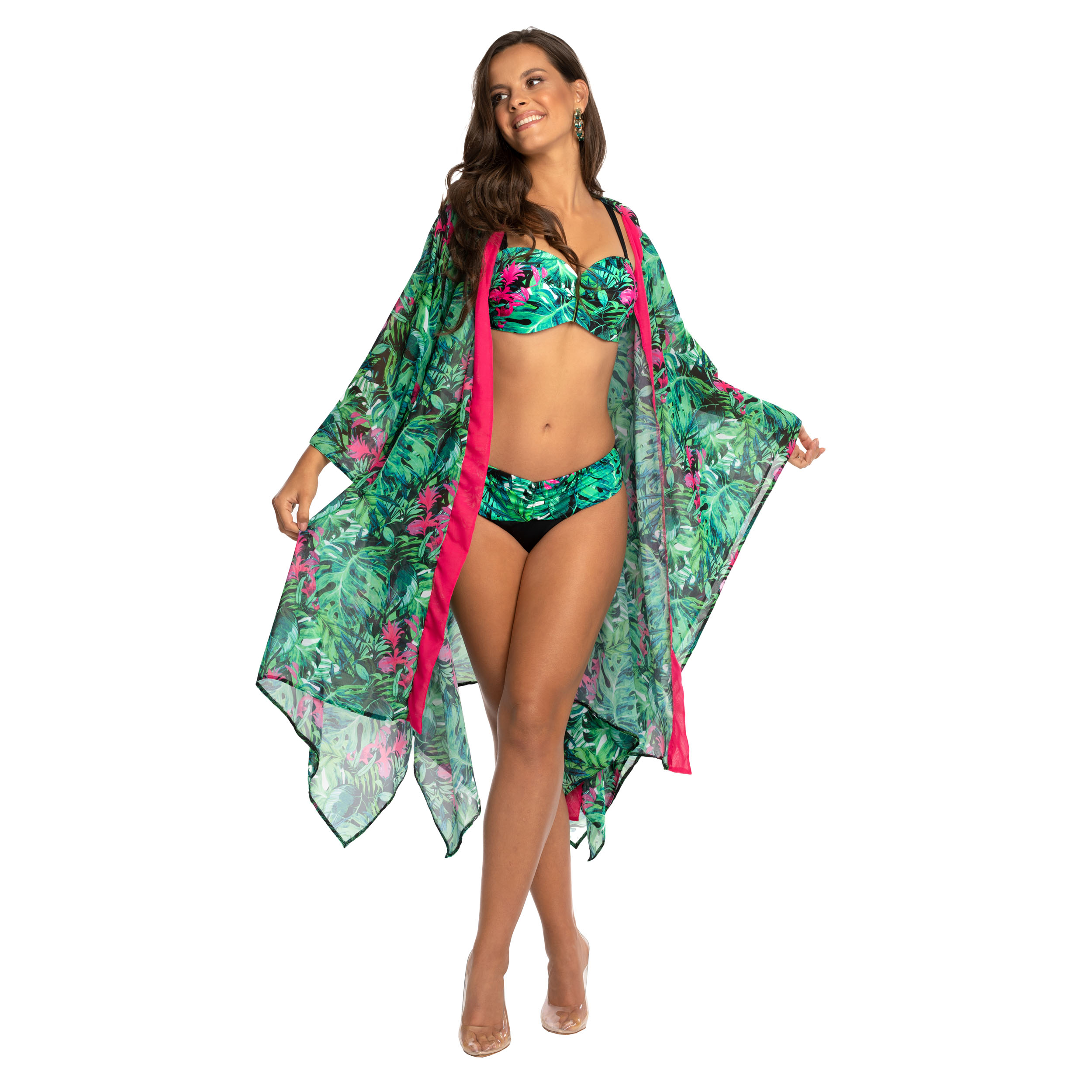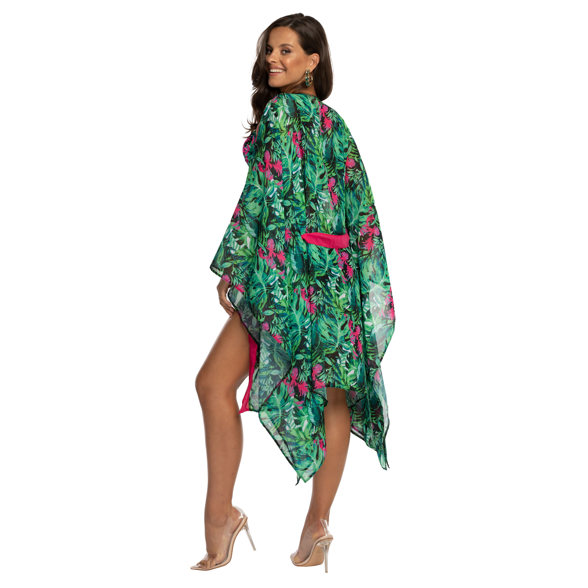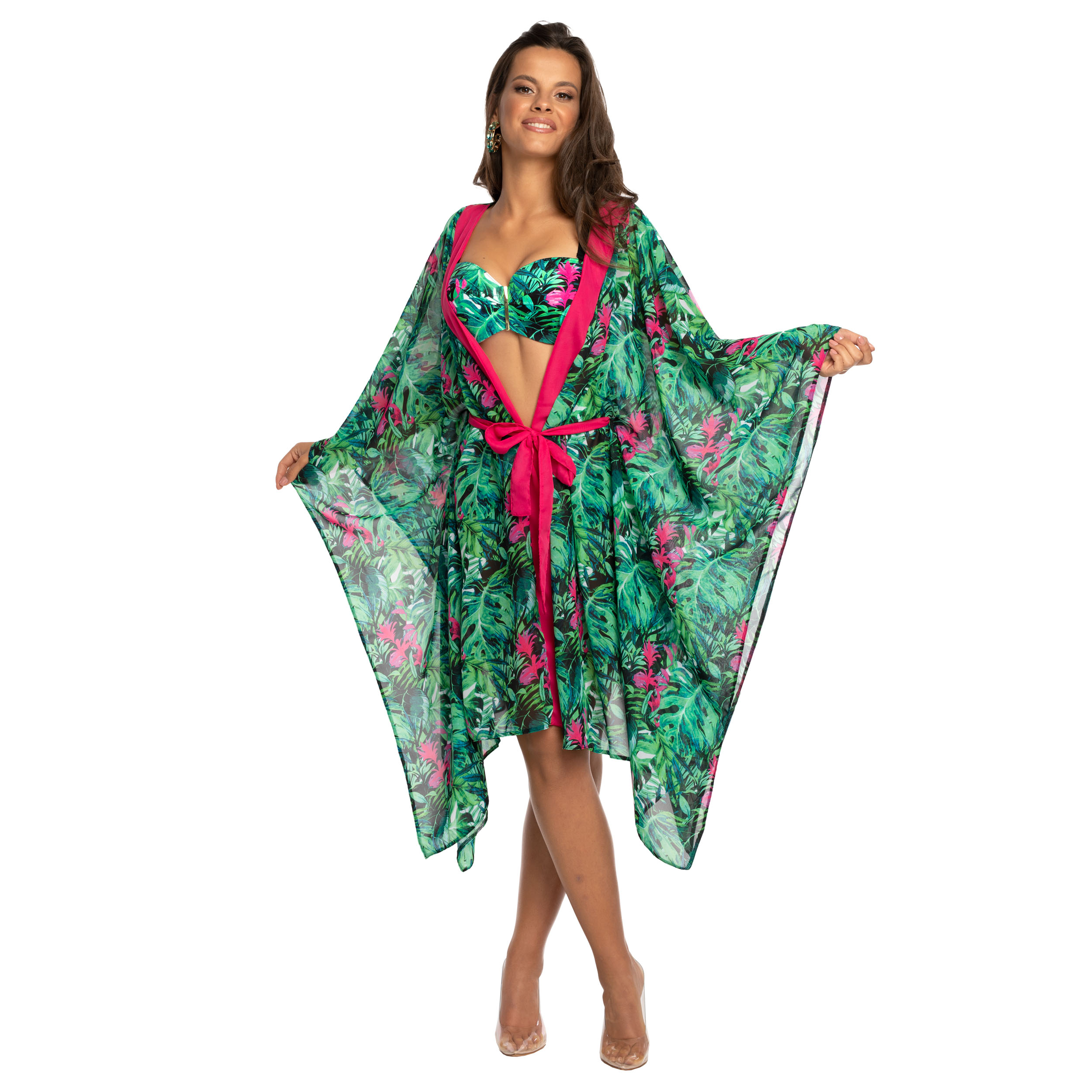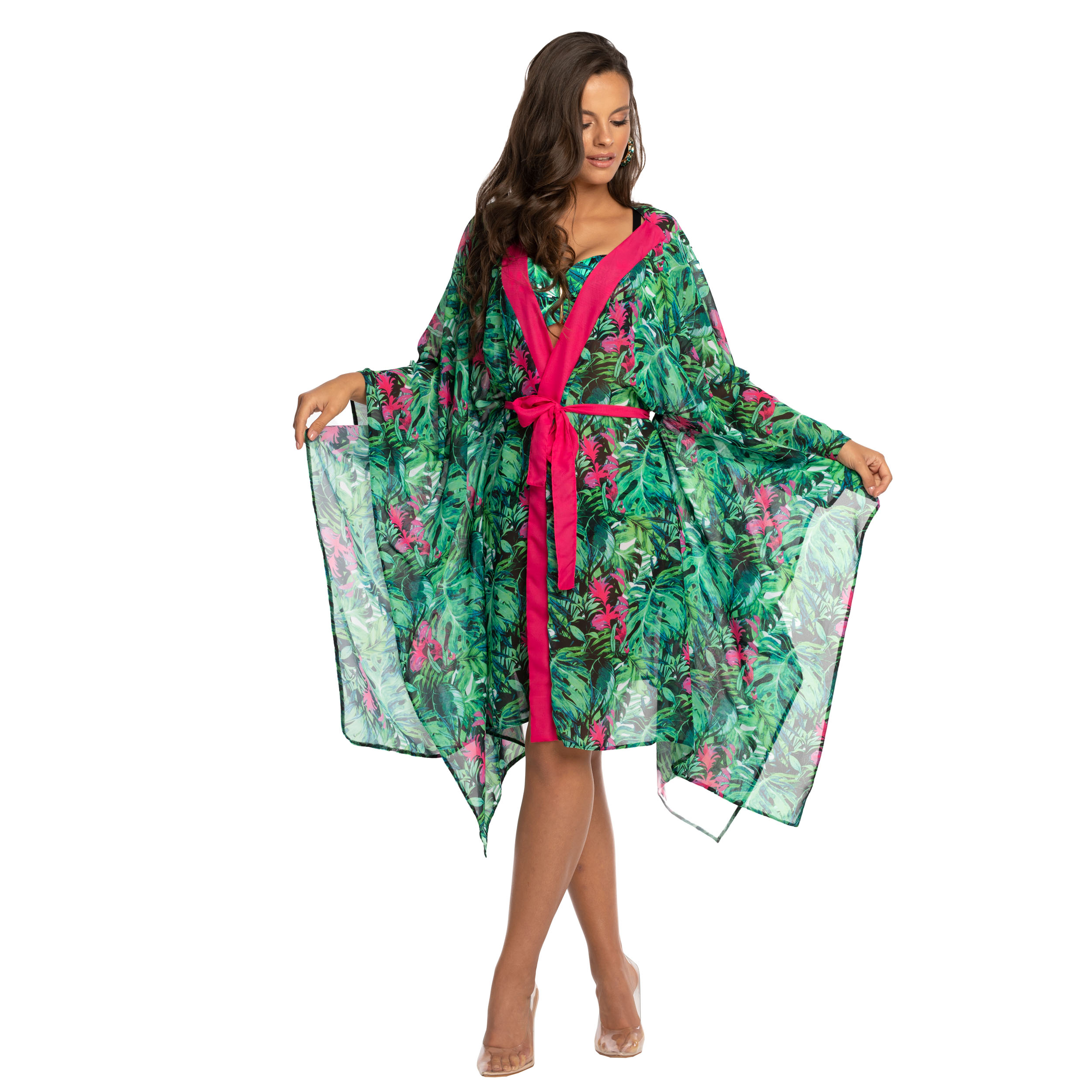 To inspirowane amazońską dżunglą kimono będzie niewątpliwą ozdobą dla każdej kobiety podczas błogiego i beztroskiego relaksu.