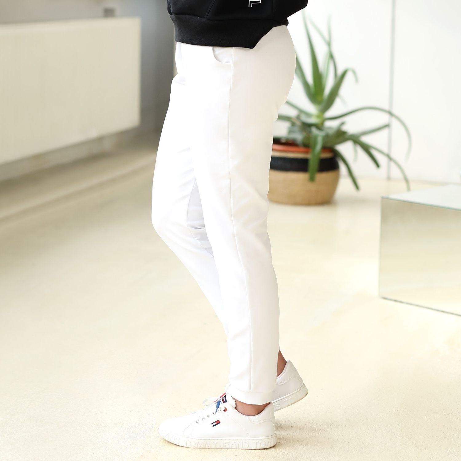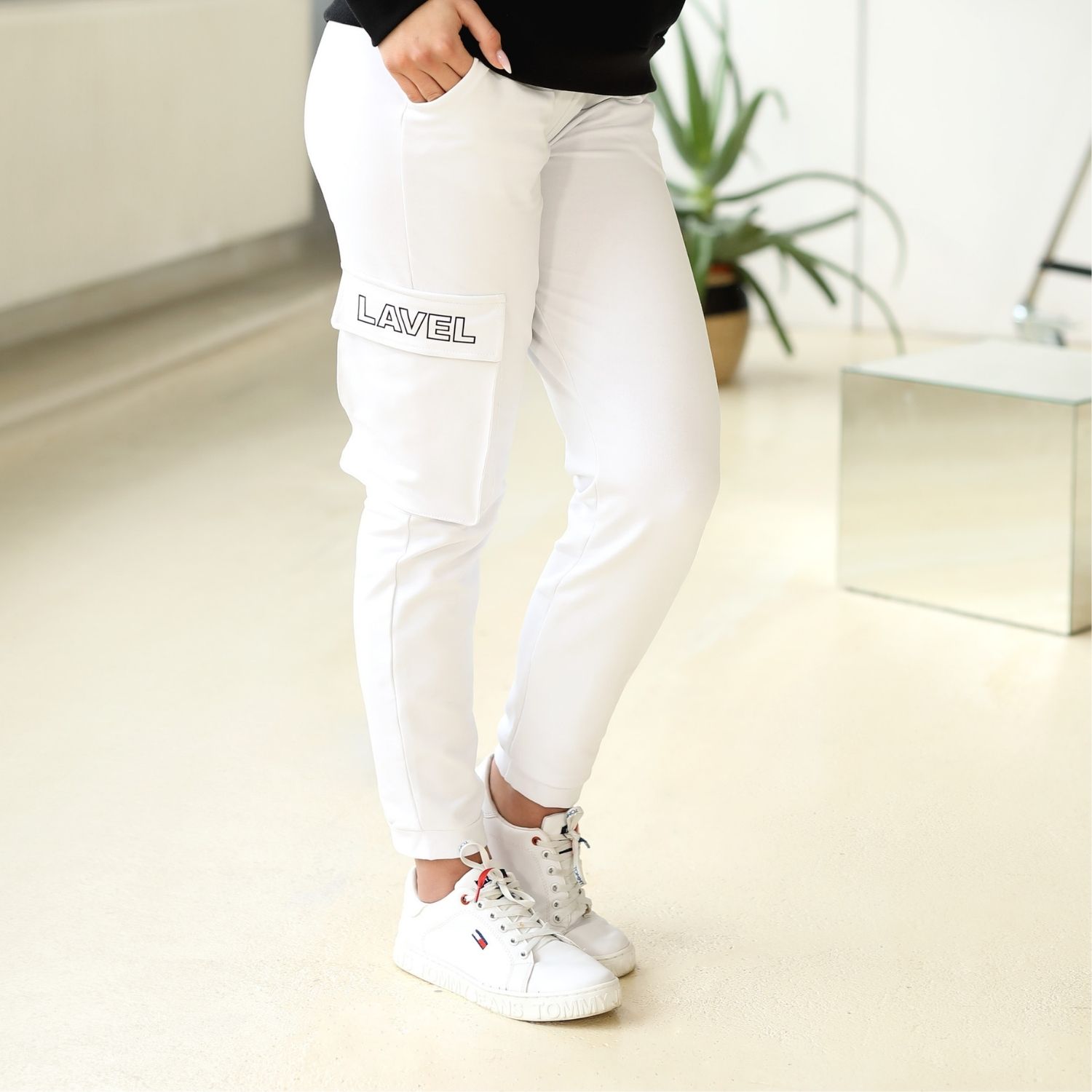 Damskie spodnie dresowe z boczną kieszenią – białe