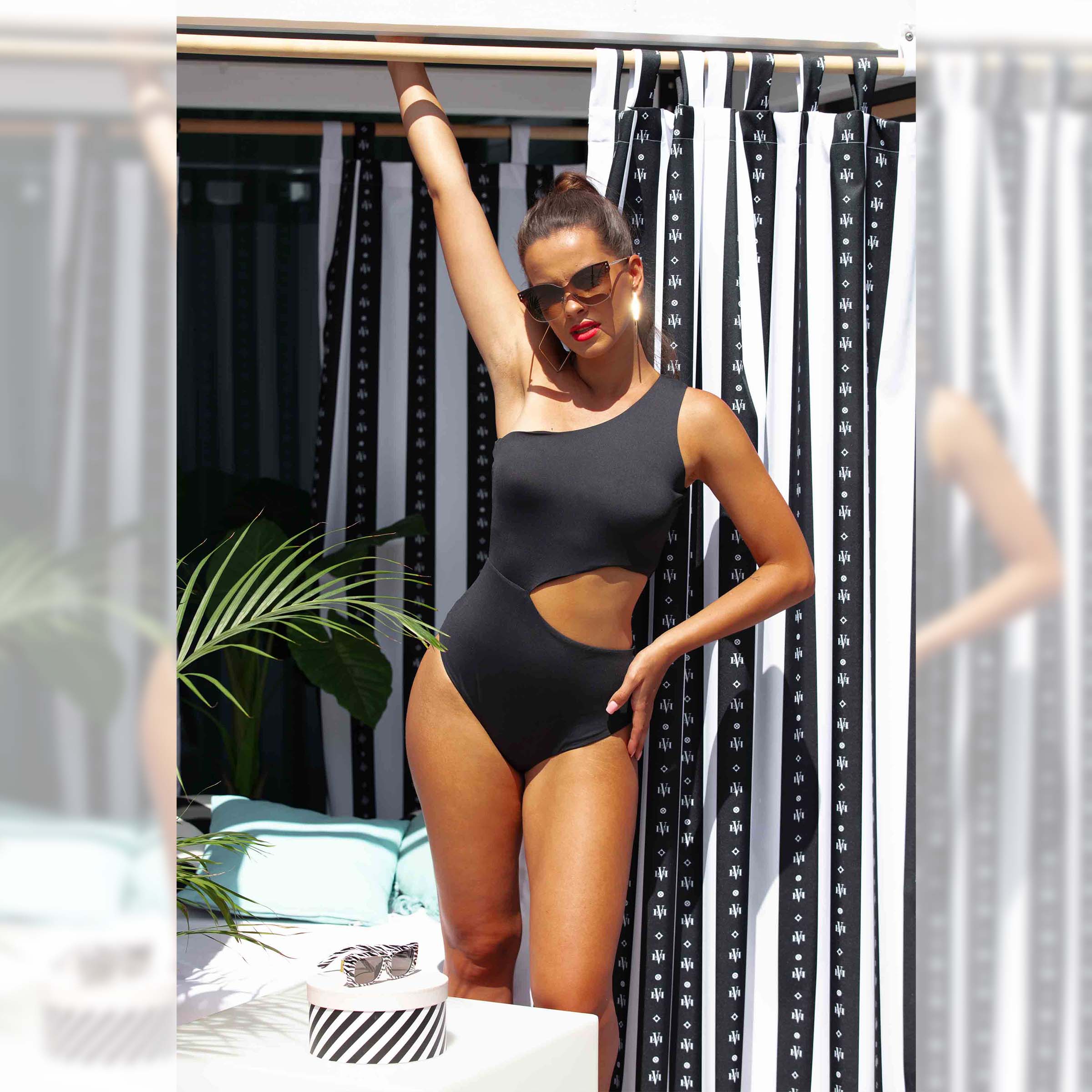 Jednoczęściowy kostium kąpielowy z wycięciem na jedno ramię z miską piankową od Lavel to kwintesencja uwodzicielskiej asymetrii i wygody. Seksowne wycięcie w talii eksponuje kobiece kształty, podczas gdy wbudowana miseczka soft gwarantuje komfort i pewność, że nic nie prześwituje. Lekka konstrukcja bez fiszbin i klasyczny czarny kolor oferują szerokie możliwości dopasowania do różnych dodatków plażowych.