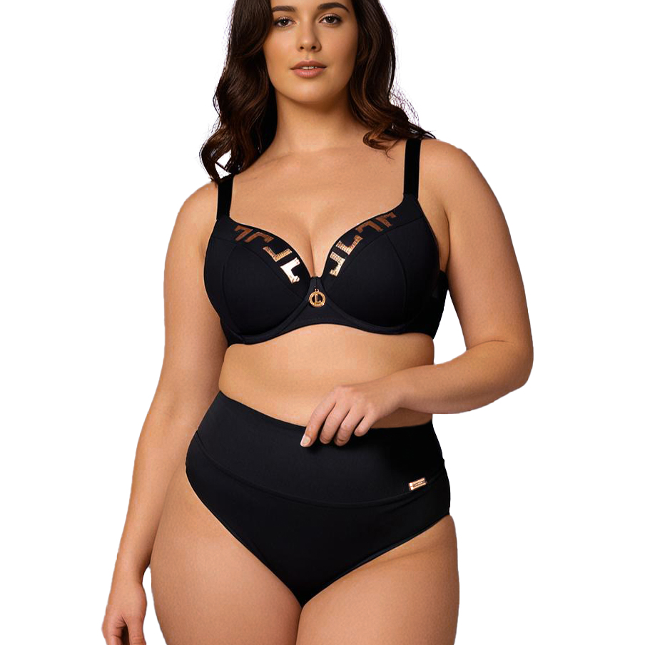 Poznaj prawdziwą perełkę wśród strojów plażowych! Klasyczna czerń w połączeniu z wysokim stanem to duet, który nigdy nie zawodzi. Te wyjątkowe figi zostały stworzone z myślą o kobietach ceniących komfort i elegancję.