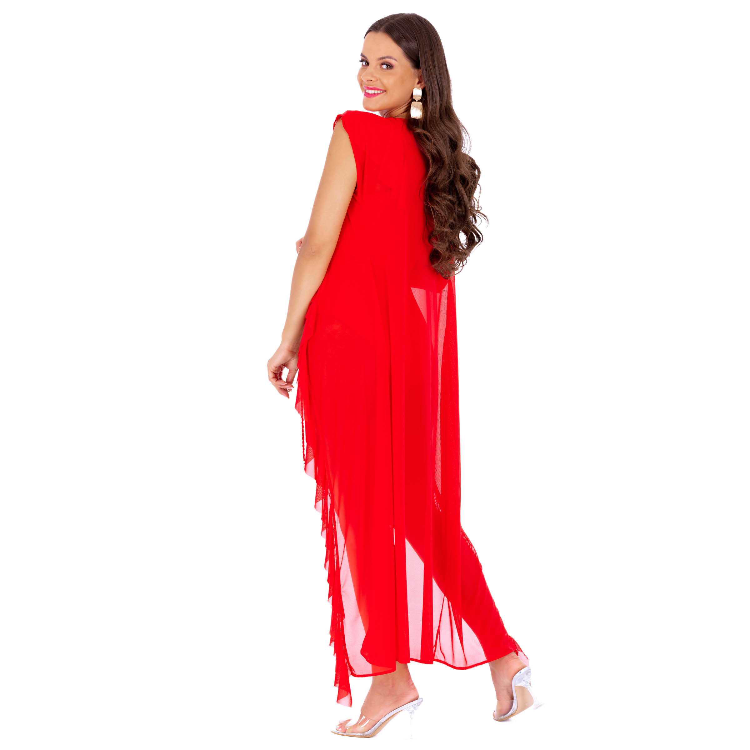 Długa sukienka plażowa z paskiem Gaja od Lavel to kwintesencja zwiewności i elegancji, idealna na letnie dni spędzone nad wodą. W kolorze czerwonym, który pięknie komponuje się z ciepłą, morską bryzą, ta sukienka dodaje lekkości każdej stylizacji. Drobne rękawki delikatnie zasłaniają ramiona, a wyszczuplający fason podkreśla sylwetkę.