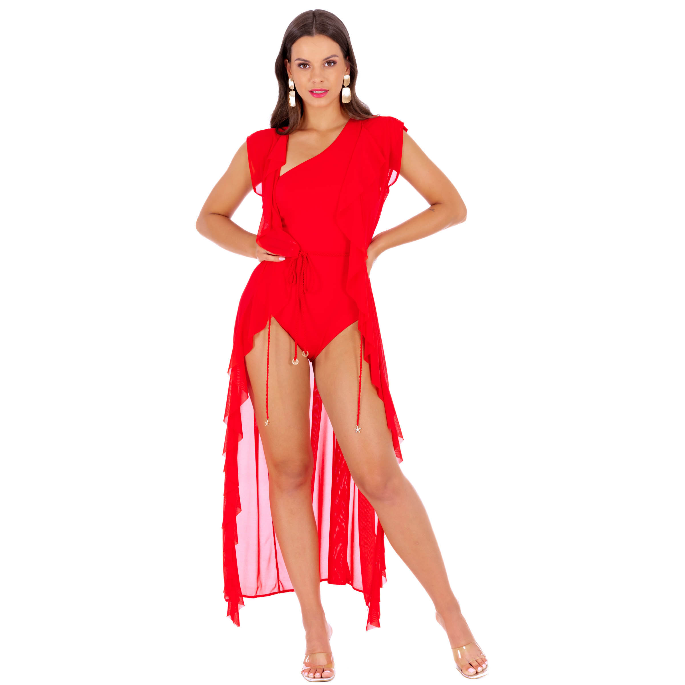 Sukienka plażowa Gaja wyróżnia się nie tylko wygodą, ale i subtelnymi detalami, takimi jak zwiewna falbana, która wykończa całość z zmysłowym akcentem. Jest to strój, który pięknie dopasowuje się do naturalnych ruchów ciała, a jednocześnie wysmukla sylwetkę, co czyni go doskonałym wyborem dla kobiet w każdym rozmiarze.