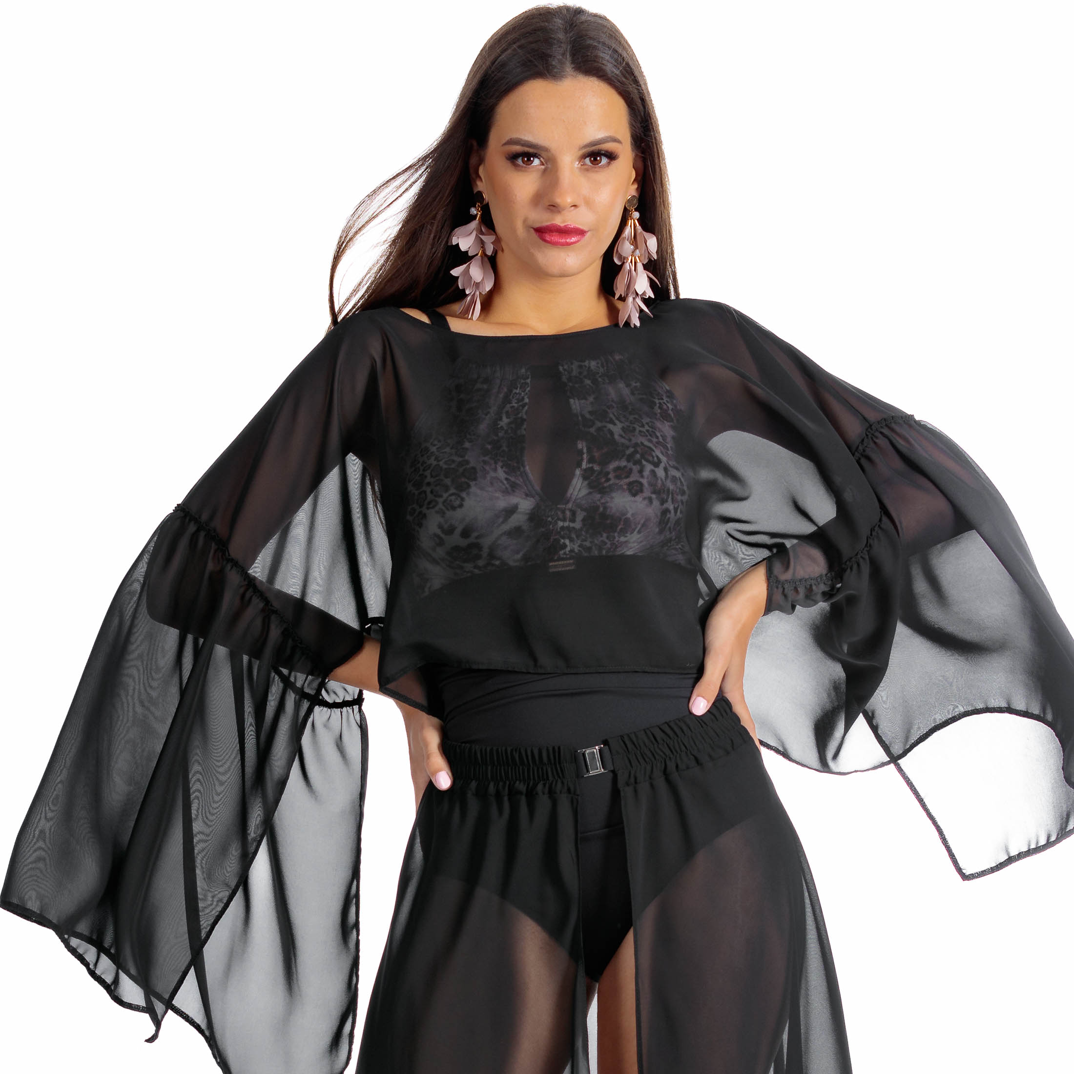 Rozkloszowane rękawy Kami Top Negro pięknie prezentują się na tle morskiej bryzy, dodając dynamiki i gracji każdemu ruchowi. To idealny sposób, aby dodać swojej stylizacji nie tylko ochrony przed słońcem, ale również wyjątkowego charakteru i elegancji.