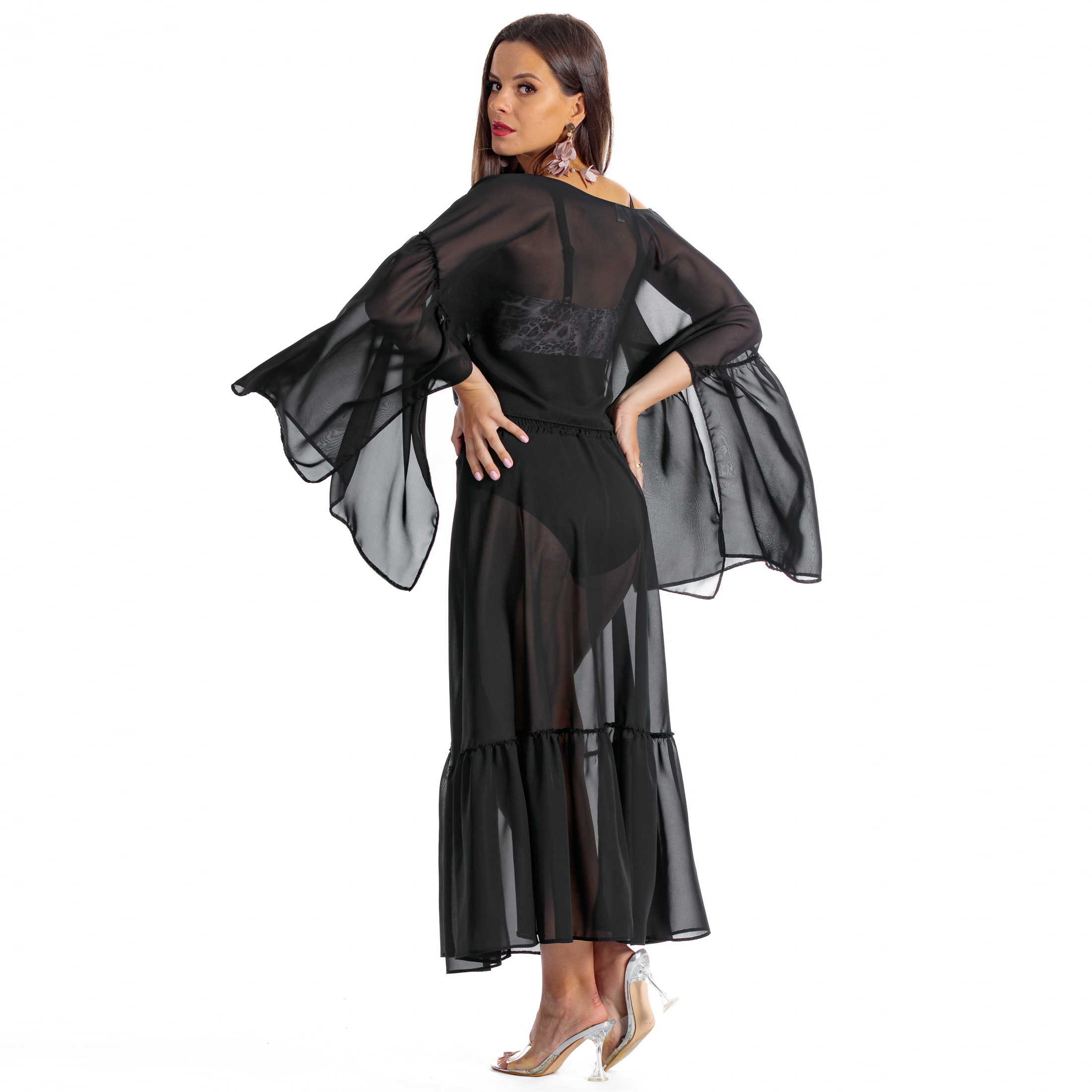 • rozkloszowane rękawy, nadające sylwetce lekkości,