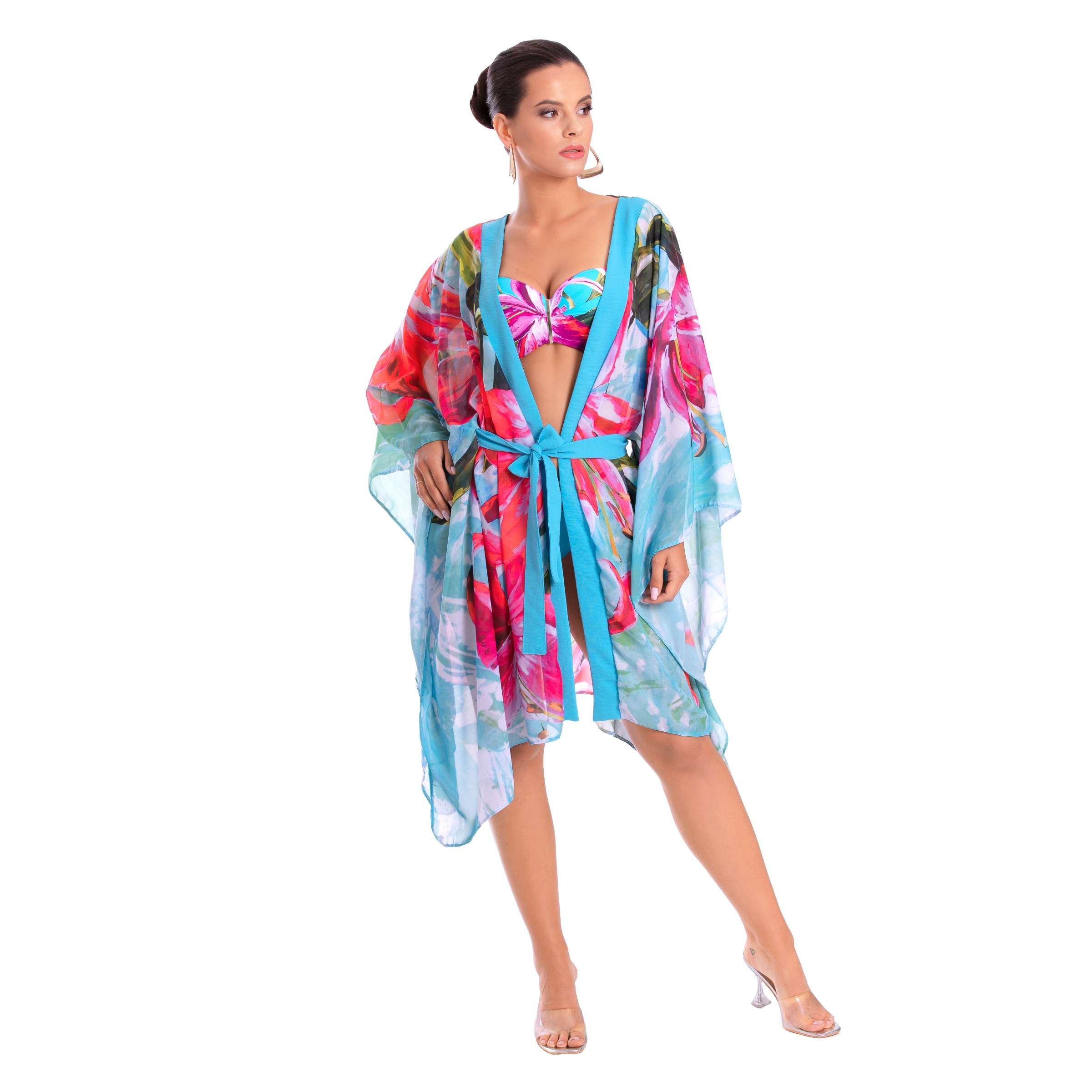 Kimono / C4 – kimono plażowe w roślinne wzory