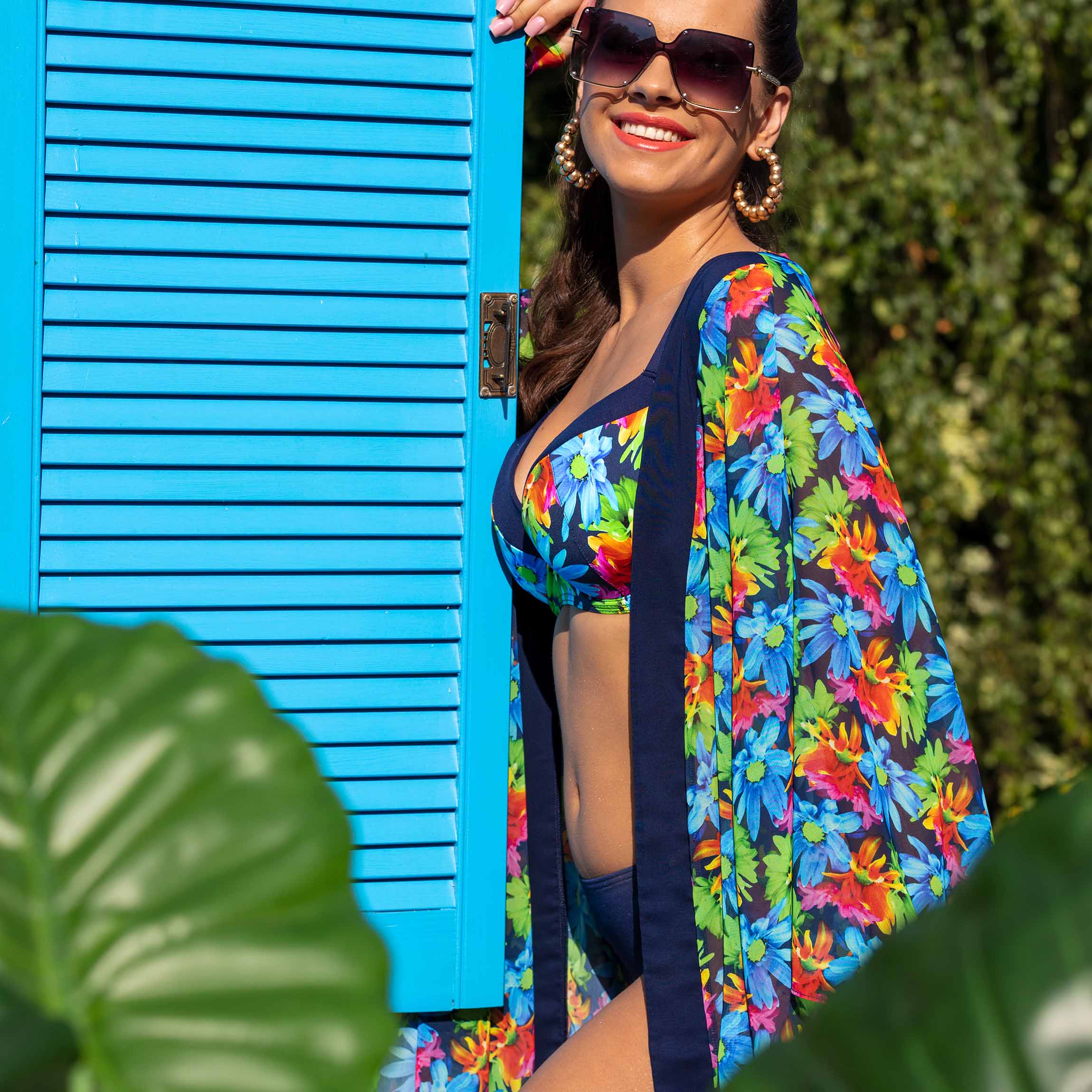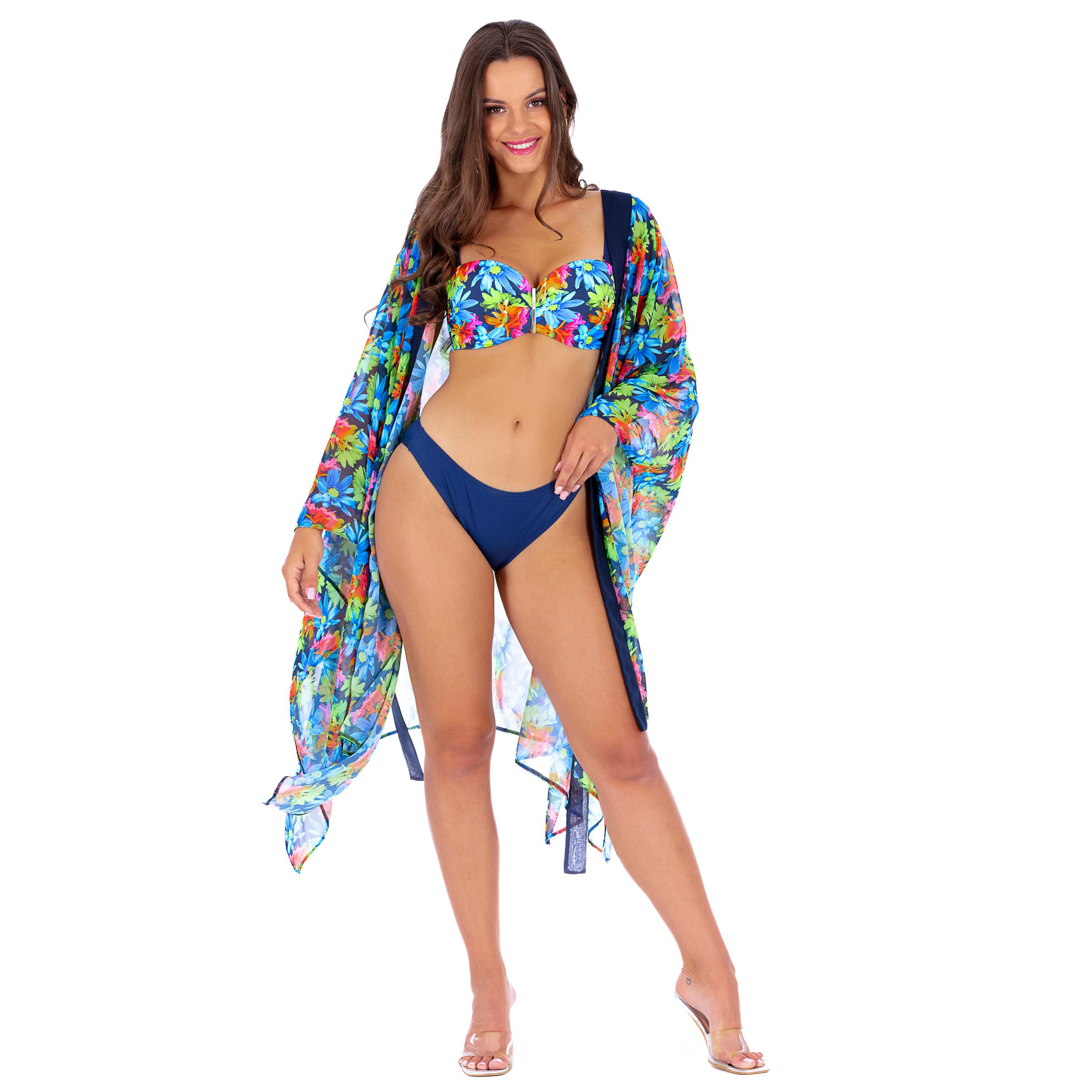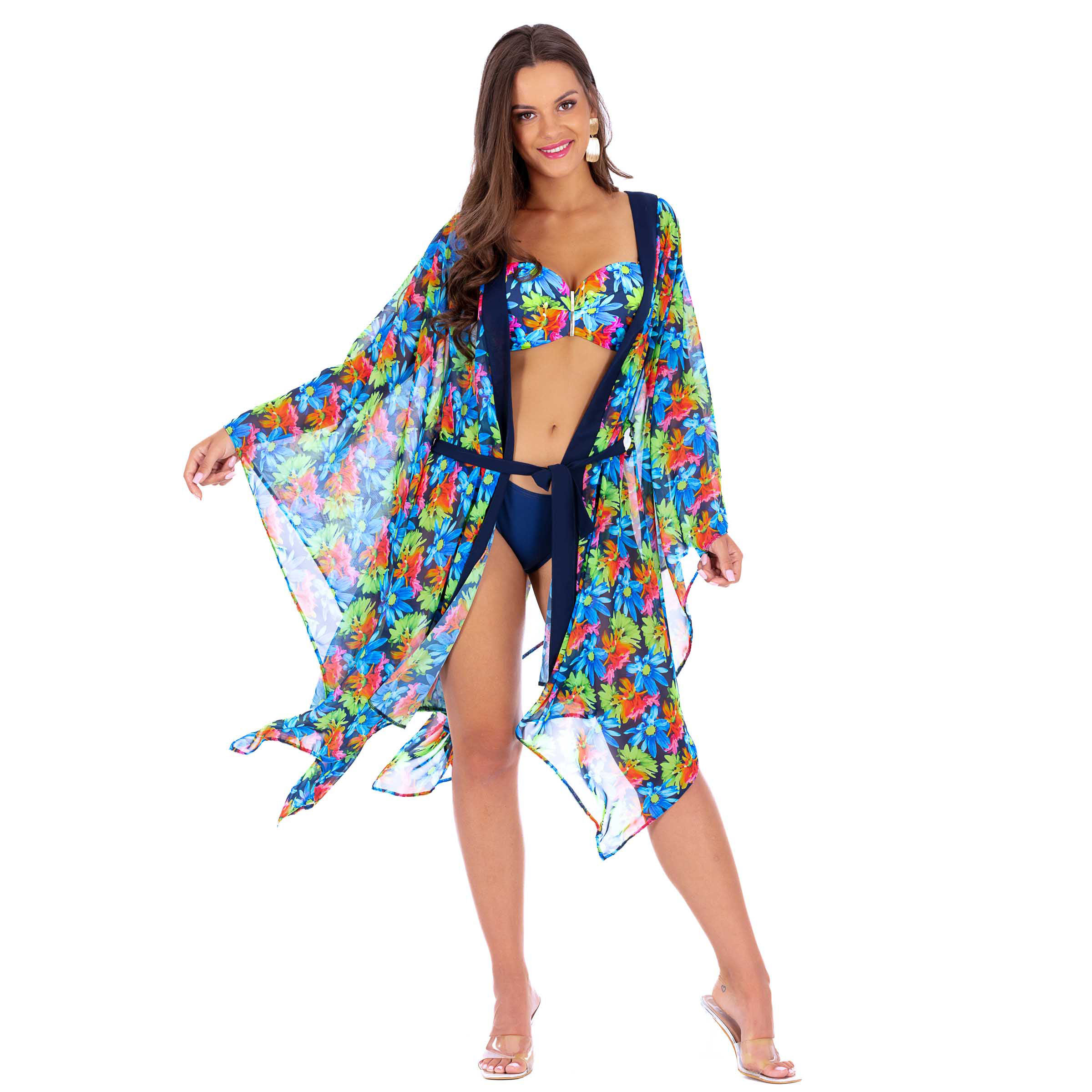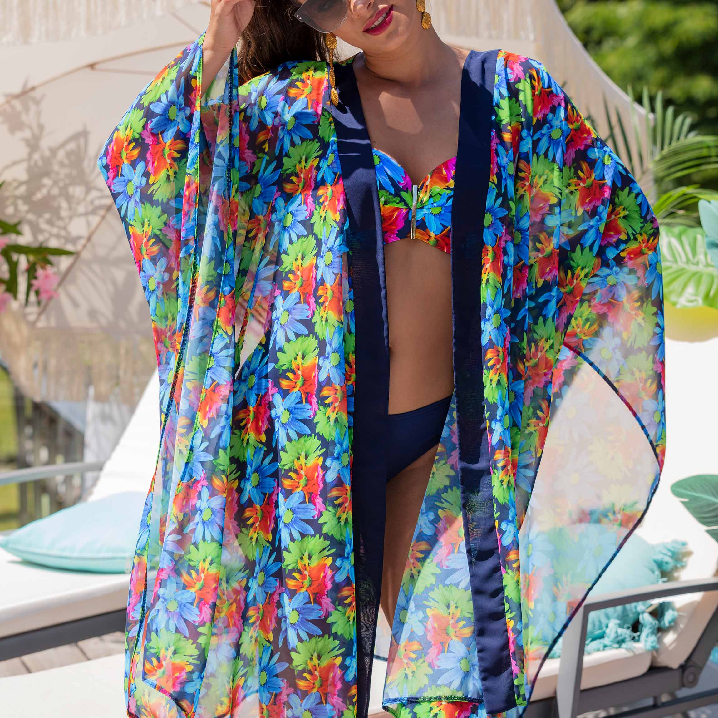 Kwiatowy wzór i szybkoschnący materiał – narzutka na strój kąpielowy typu Kimono