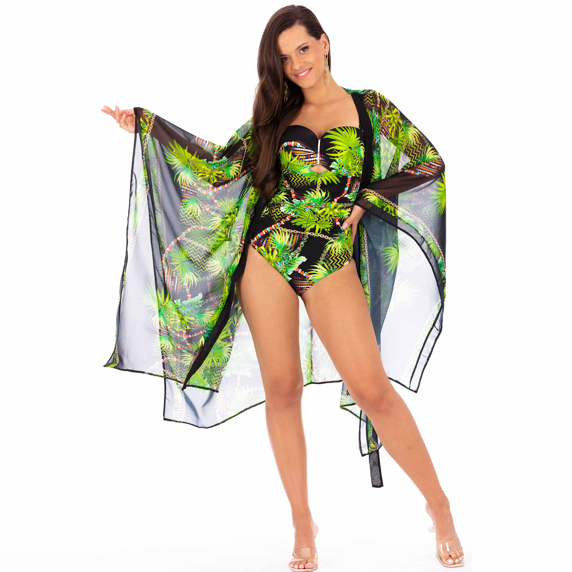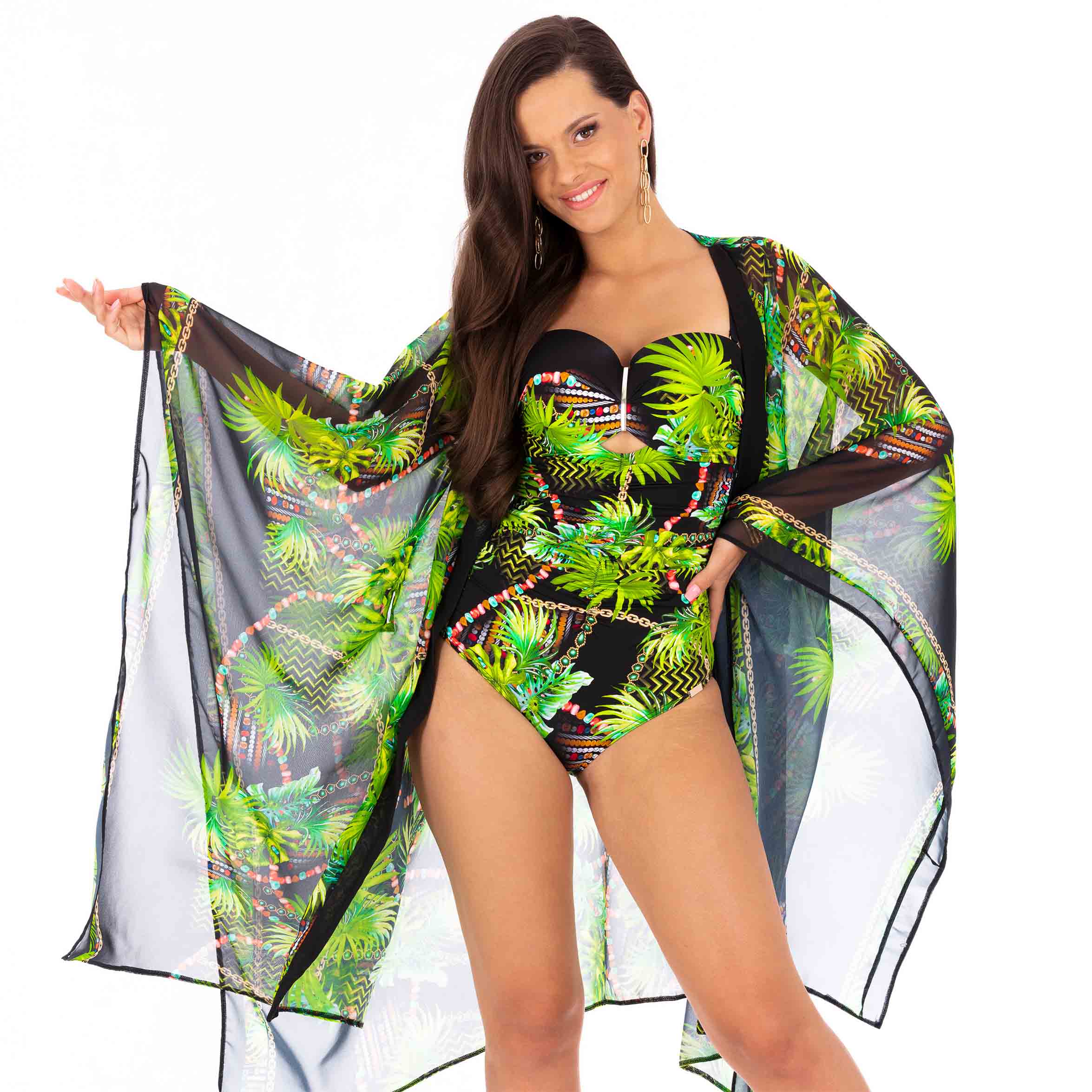 Zwiewne kimono plażowe z tropikalnym motywem od Z23