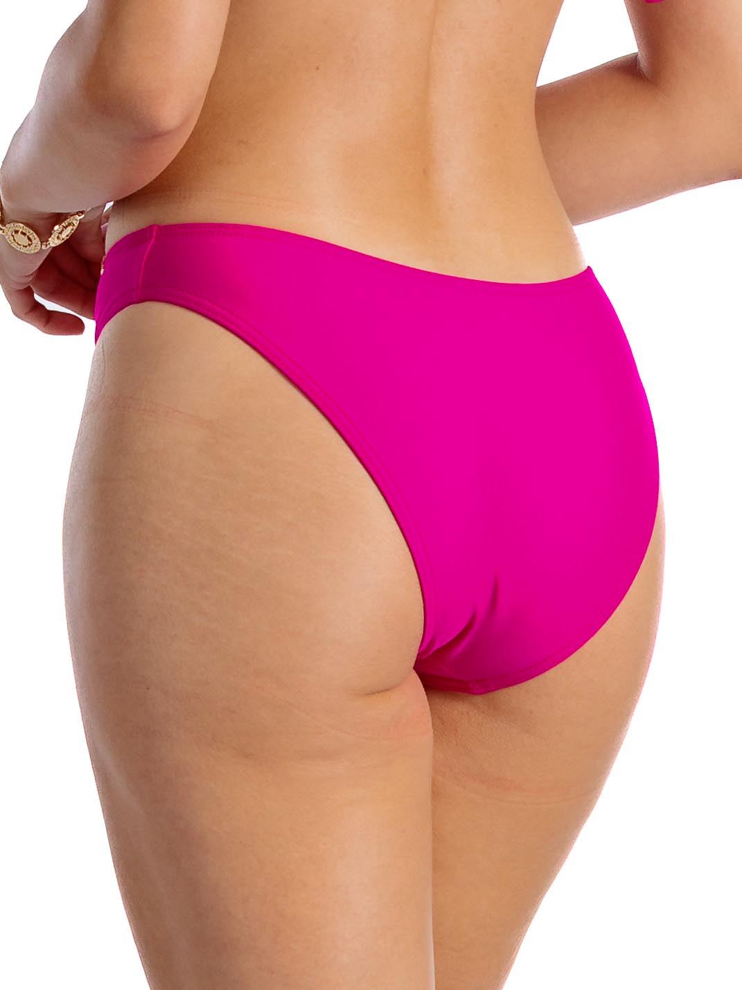 Odkryj magię lata w naszych ekskluzywnych majtkach kąpielowych, które łączą w sobie najwyższą jakość wykonania z ponadczasowym designem. Intensywny fuksjowy kolor nie tylko przyciąga spojrzenia, ale także doskonale podkreśla złocistą opaleniznę, wprowadzając tropikalny klimat nawet na polskie plaże.