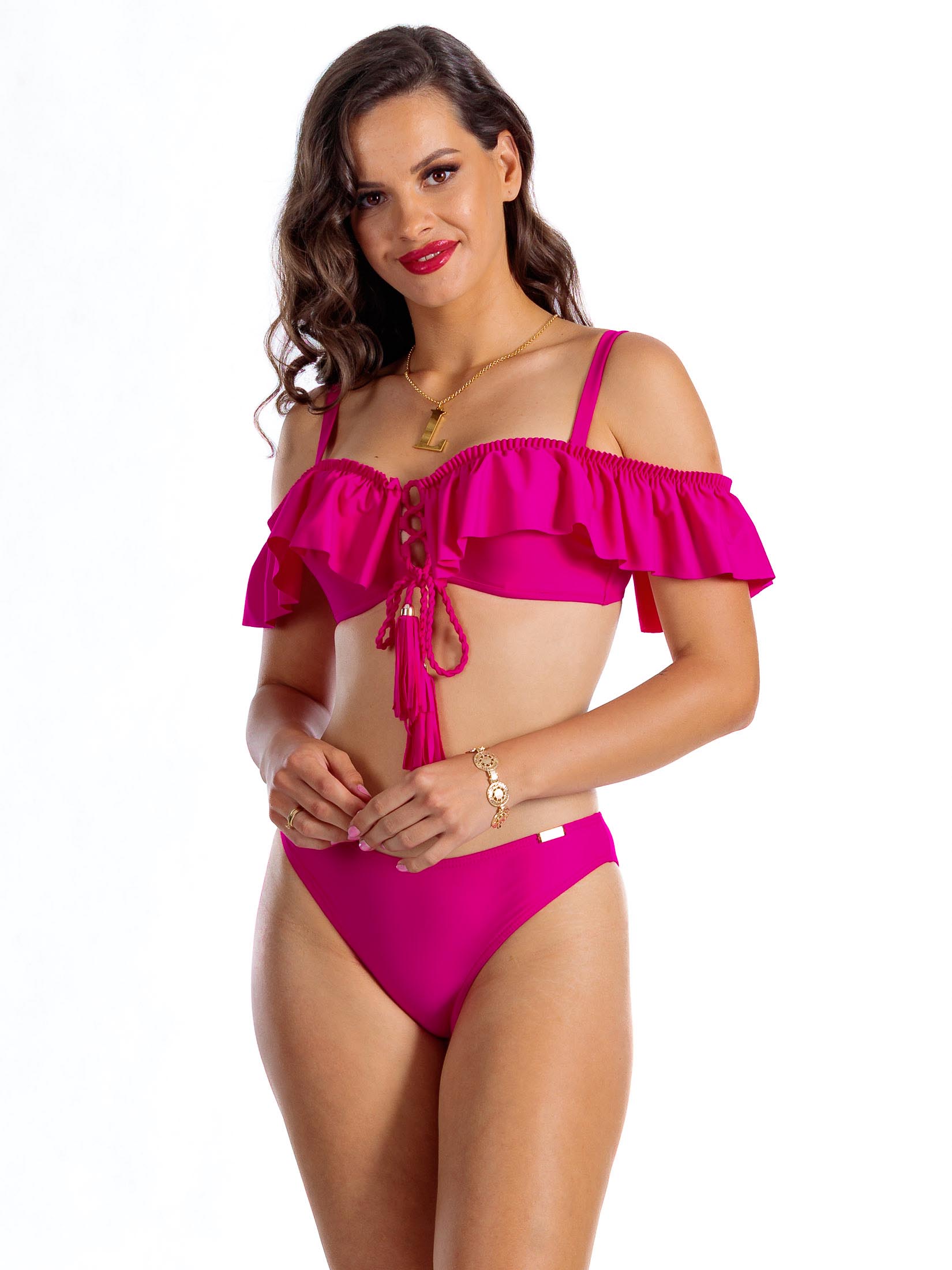 Nasza kolekcja to precyzyjnie dobrane odcienie i spójne wzornictwo. Wszystkie elementy strojów kąpielowych zostały stworzone tak, aby idealnie ze sobą współgrały. Fuksjowy odcień jest identyczny we wszystkich częściach kolekcji (-135 na końcu nazwy), dzięki czemu możesz swobodnie łączyć różne fasony góry i dołu, tworząc perfekcyjnie dopasowany do Twoich potrzeb dwuczęściowy kostium kąpielowy.