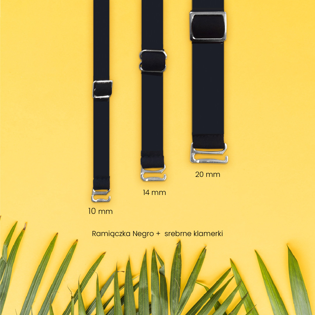 Dodaj swojemu strojowi kąpielowemu elegancji i funkcjonalności dzięki naszym ramiączkom w kolorze Negro. Wykonane z najwyższej jakości materiałów, te czarne ramiączka są dostępne w trzech szerokościach: 10 mm, 14 mm oraz 20 mm, co pozwala na idealne dopasowanie do Twoich potrzeb.