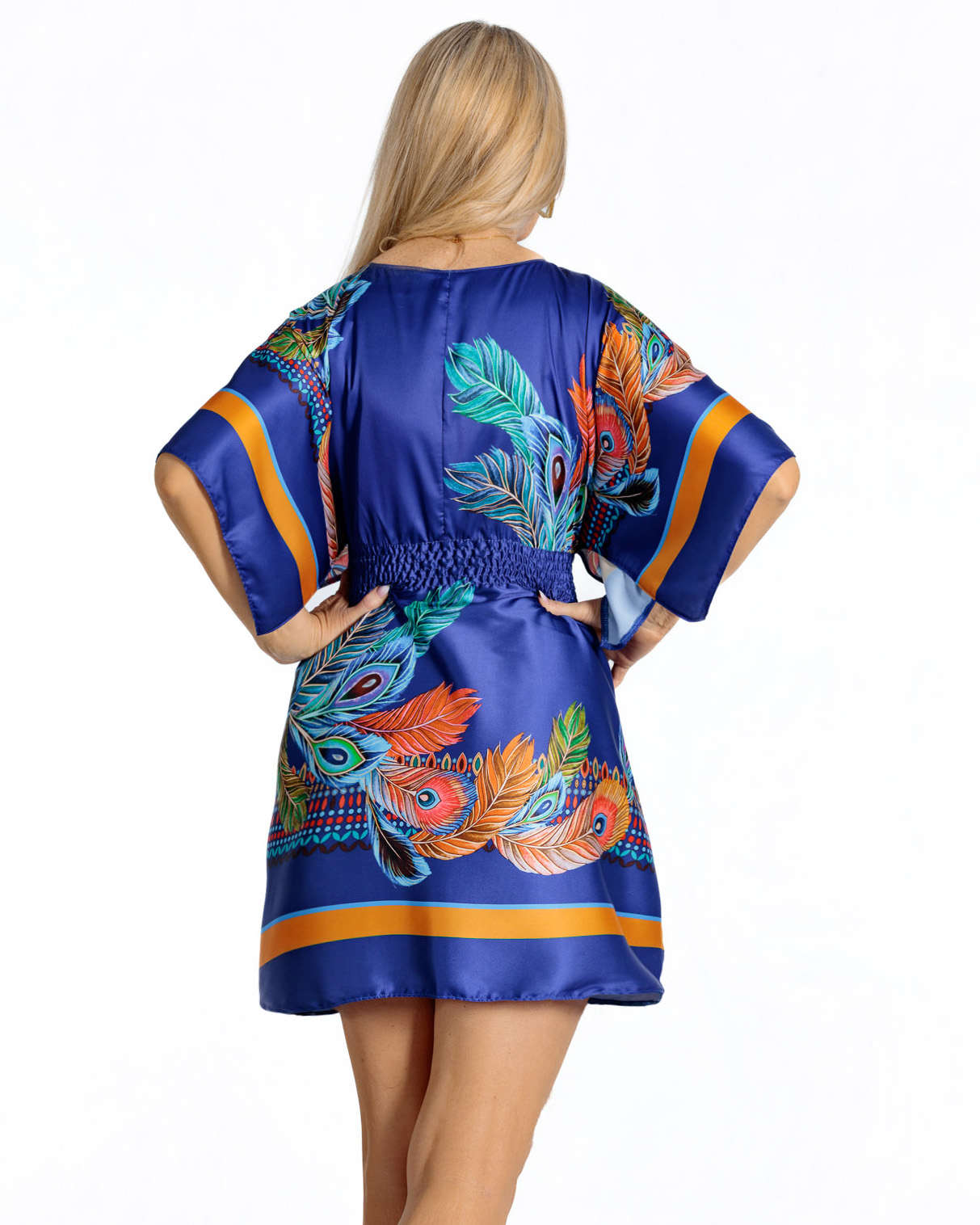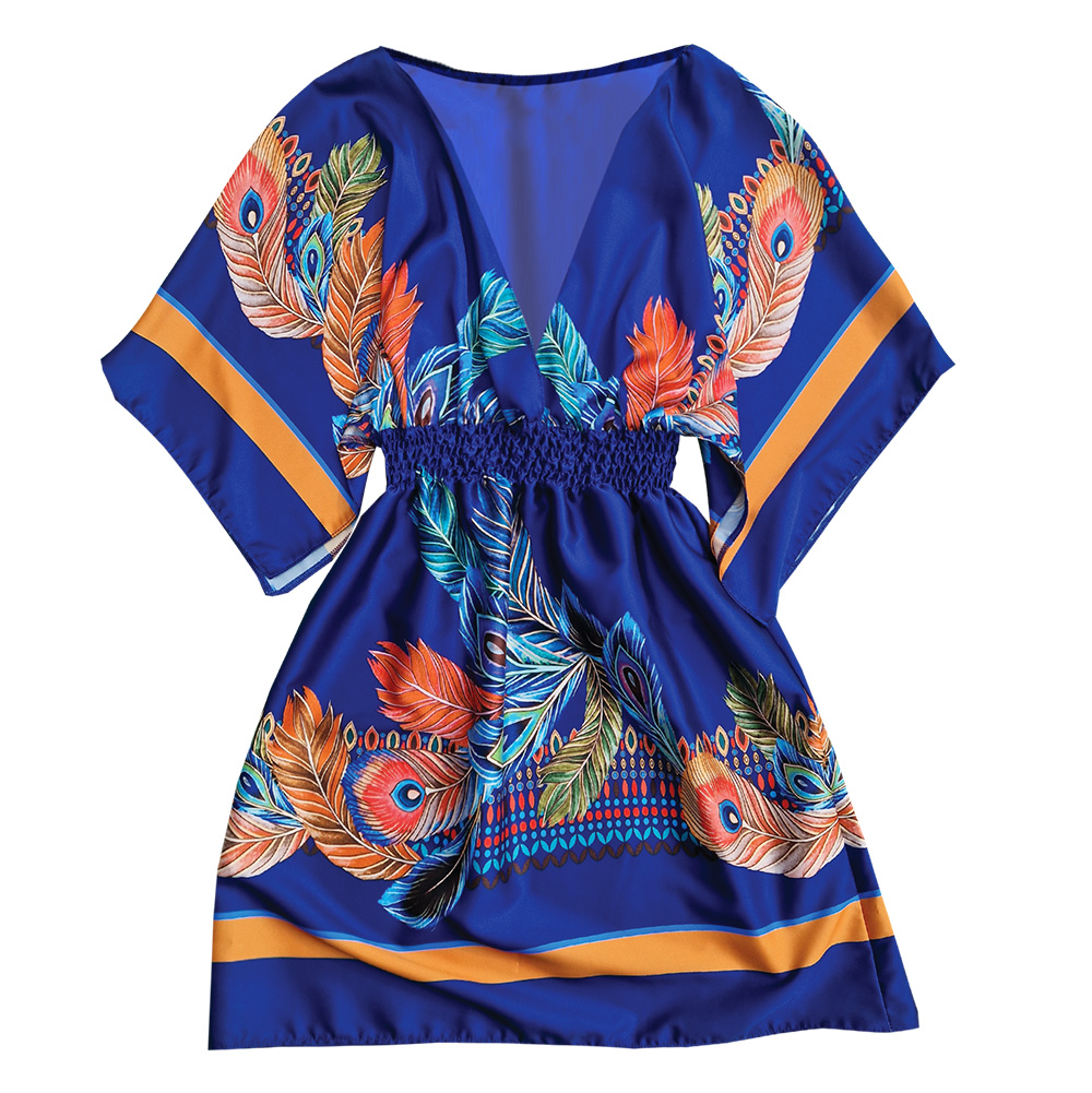 Elegancka sukienka plażowa z motywem pawich piór – niezwykły design