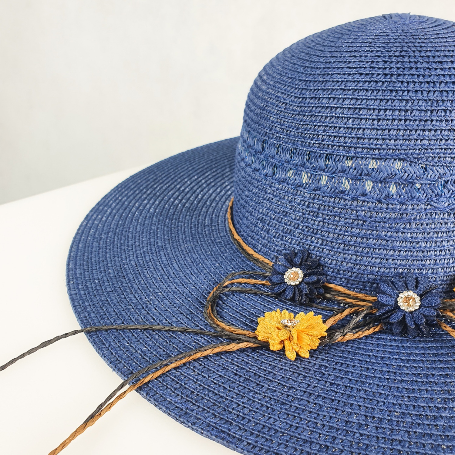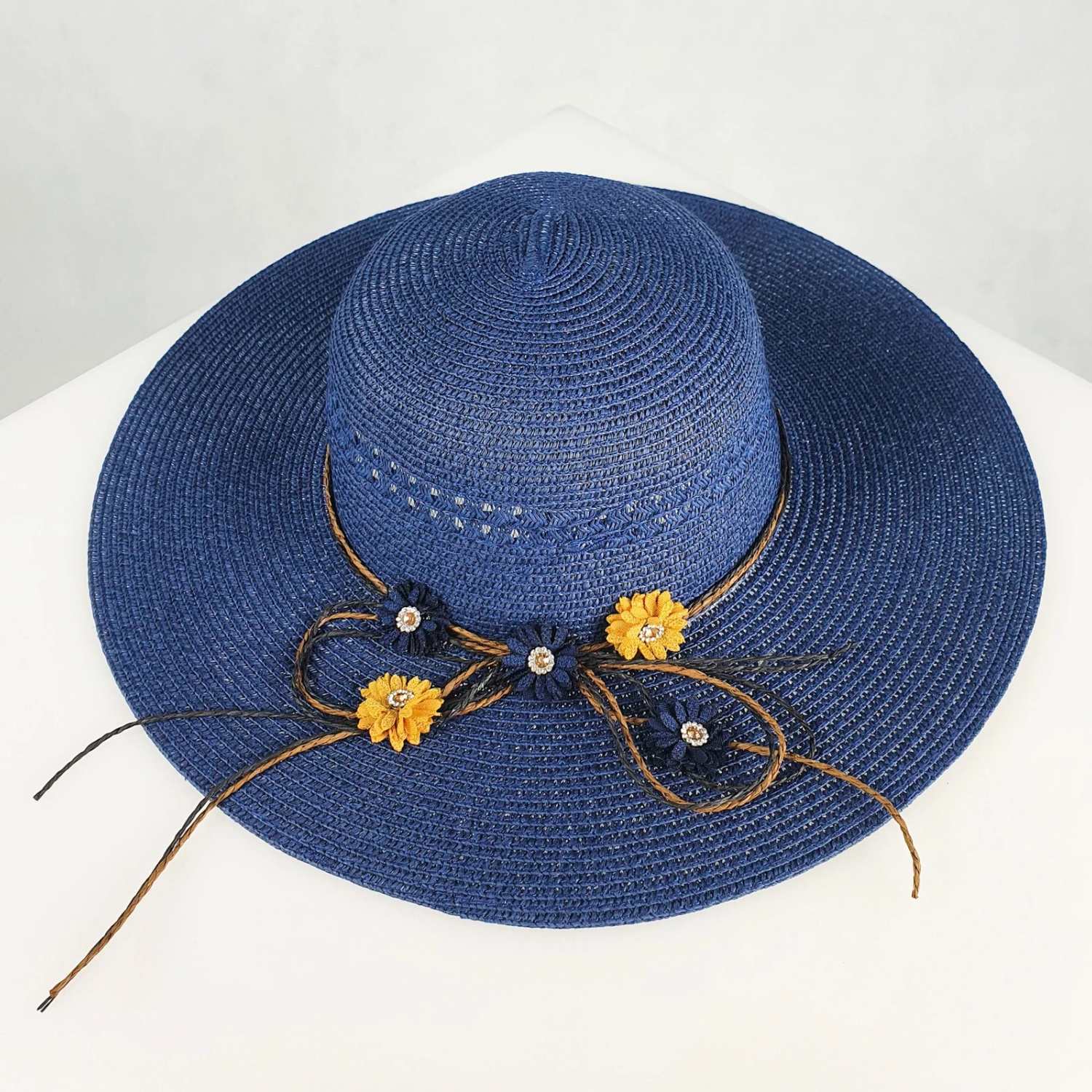 Lily / Marino – granatowy kapelusz plażowy z kwiatami