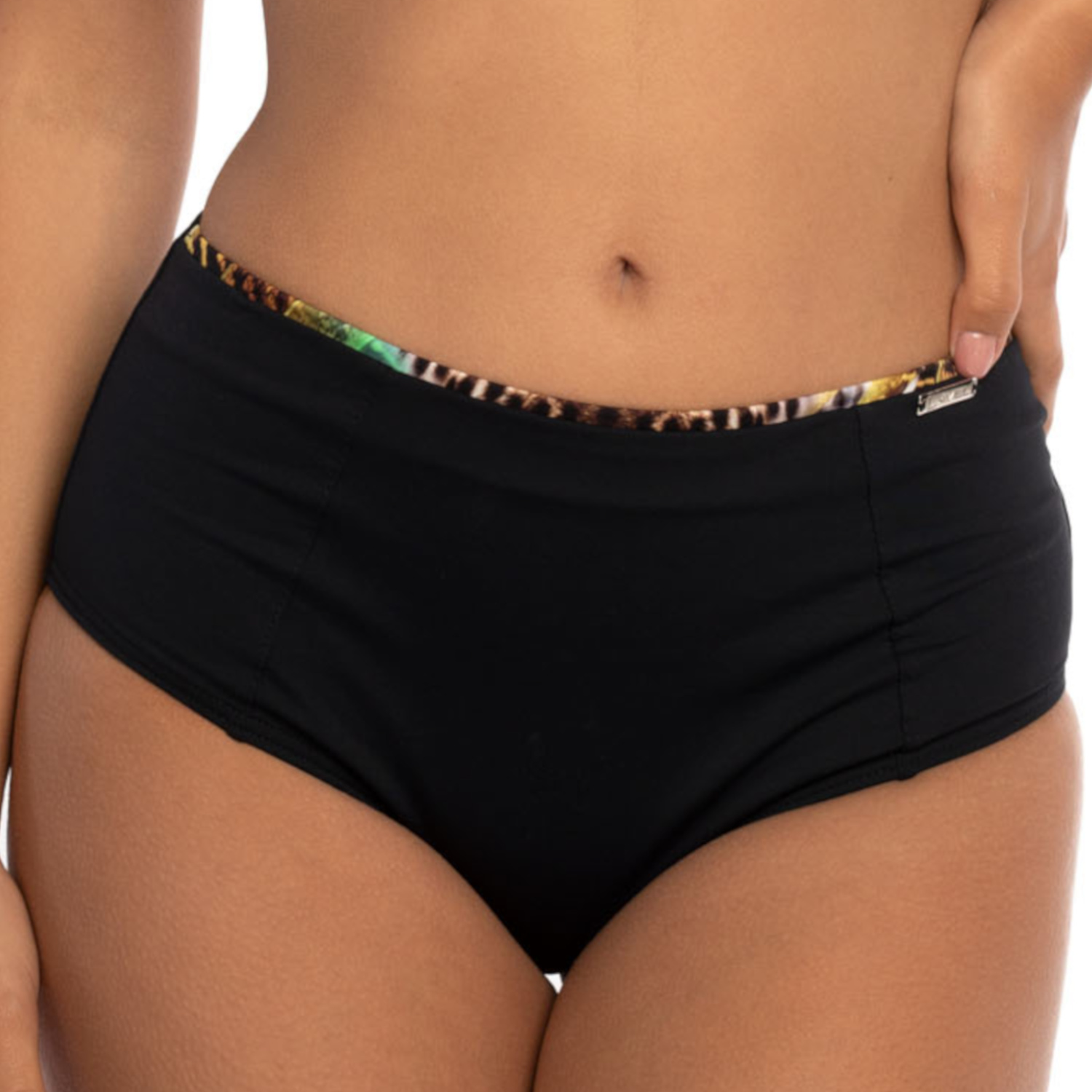 Figi Loren 1 / F11 – czarne majtki kąpielowe z wyższym stanem