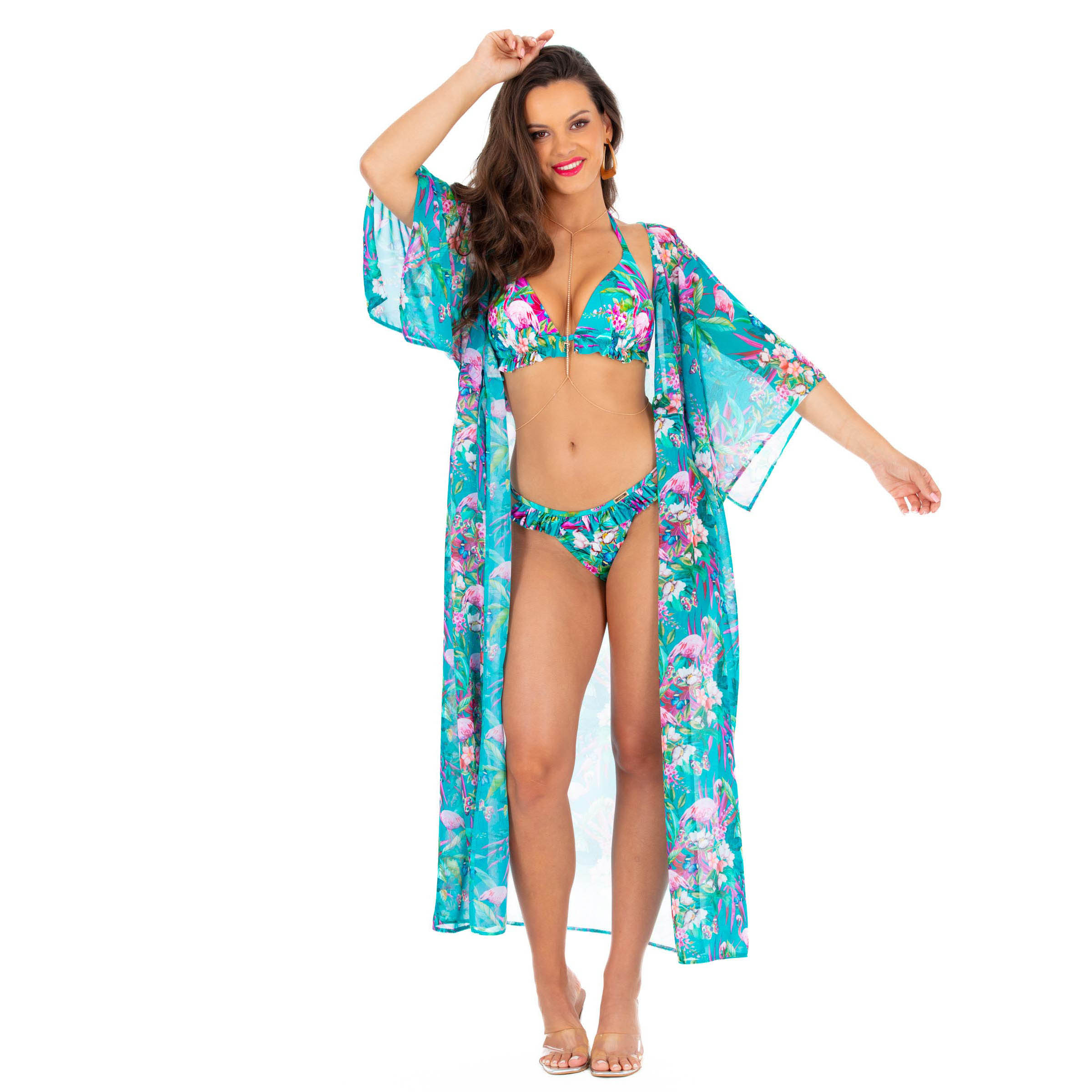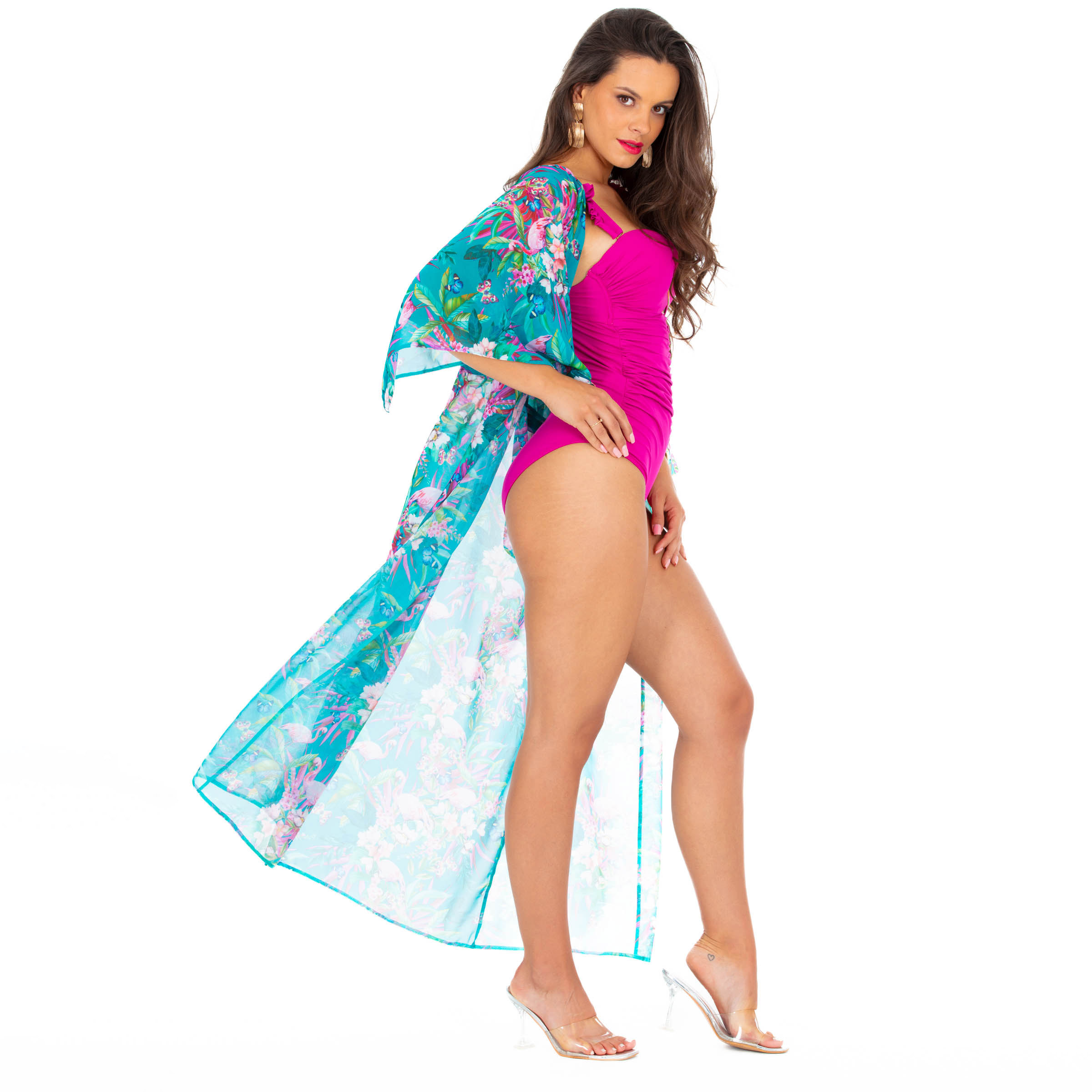 Długa narzutka plażowa Luna S w kwiaty – Lekkość i ochrona w letnim stylu