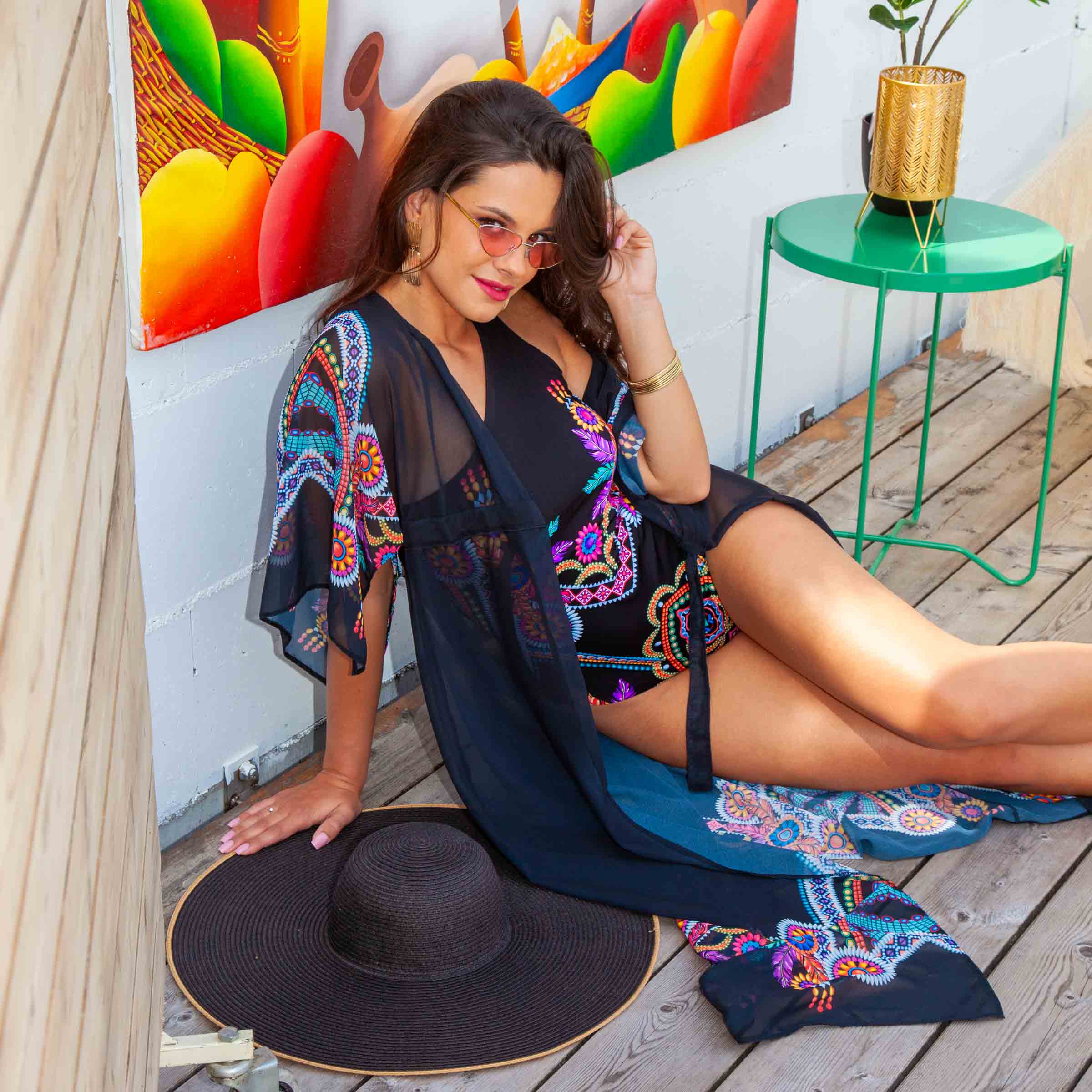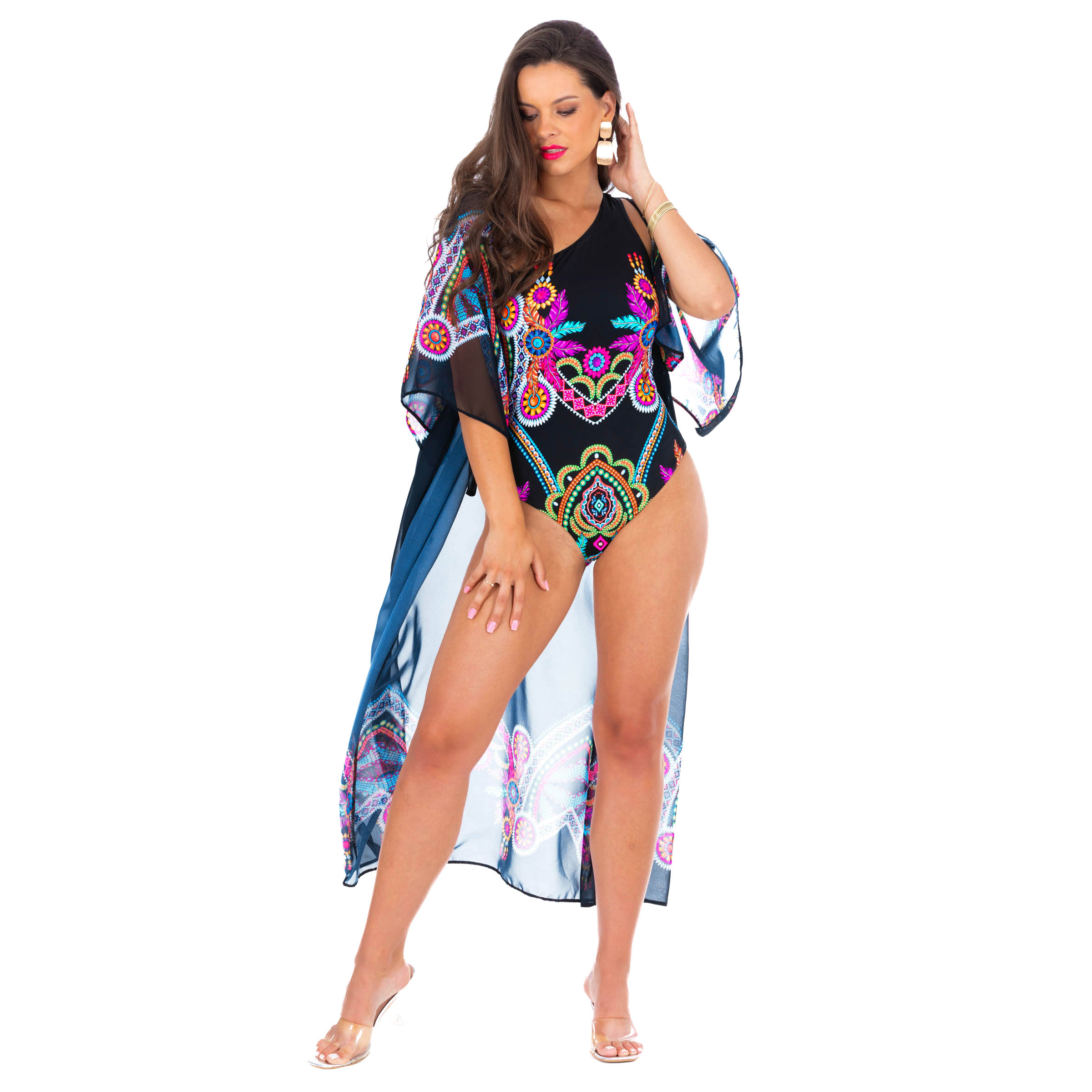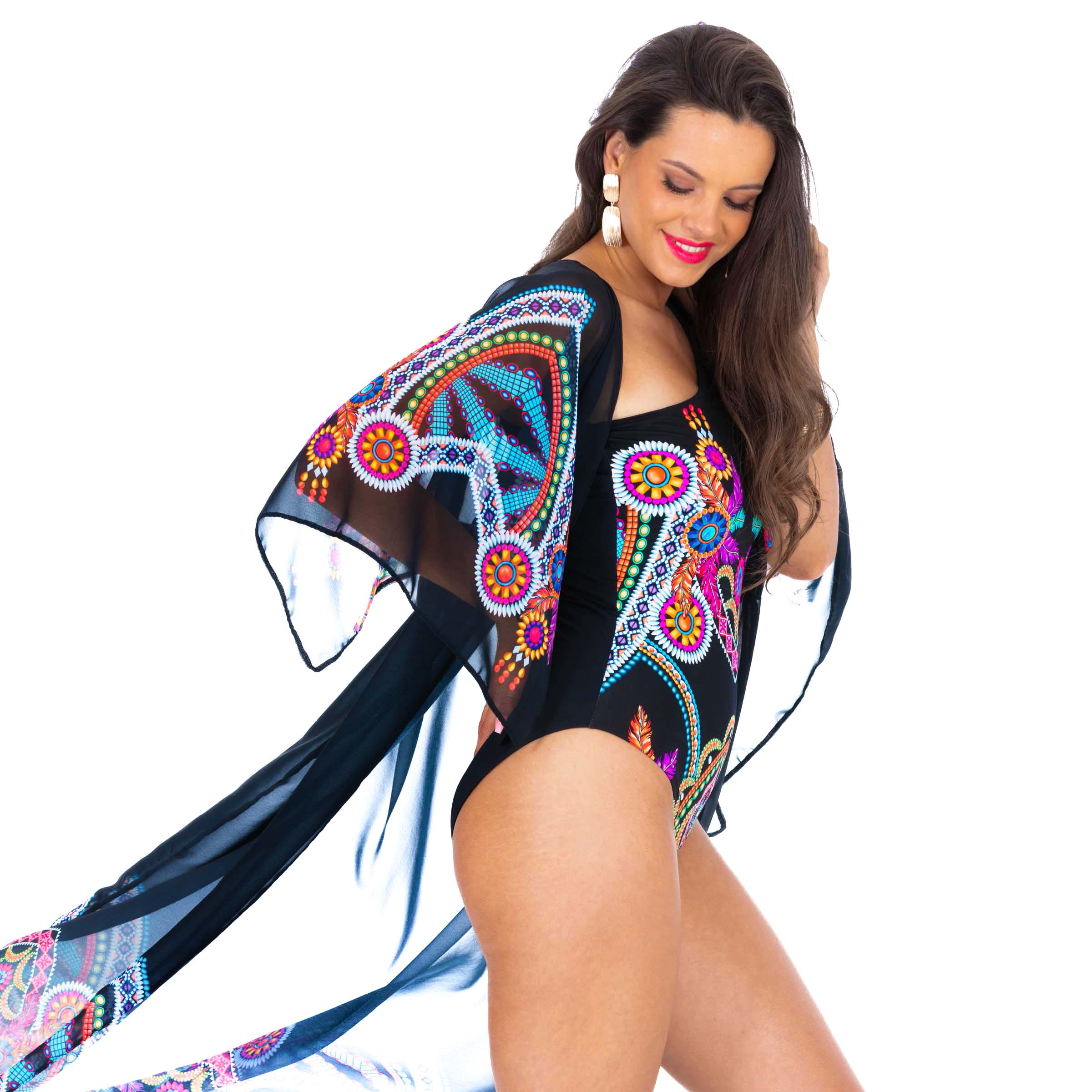 Długa narzutka plażowa Luna S od Lavel to doskonałe połączenie stylu boho chic z praktyczną ochroną przed słońcem. Wykonana z lekkiego i zwiewnego materiału, idealnego na lato, zapewnia komfort oraz chroni ramiona przed nadmiernym opalaniem. Czarna narzutka z kolorowymi wzorami boho dodaje niepowtarzalnego charakteru i wpisuje się w najnowsze trendy letnich akcesoriów plażowych.