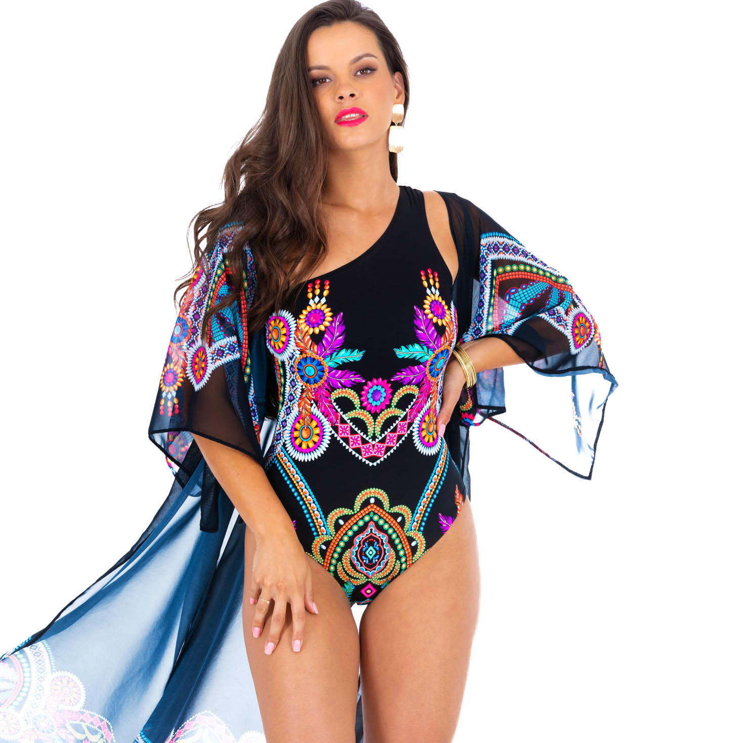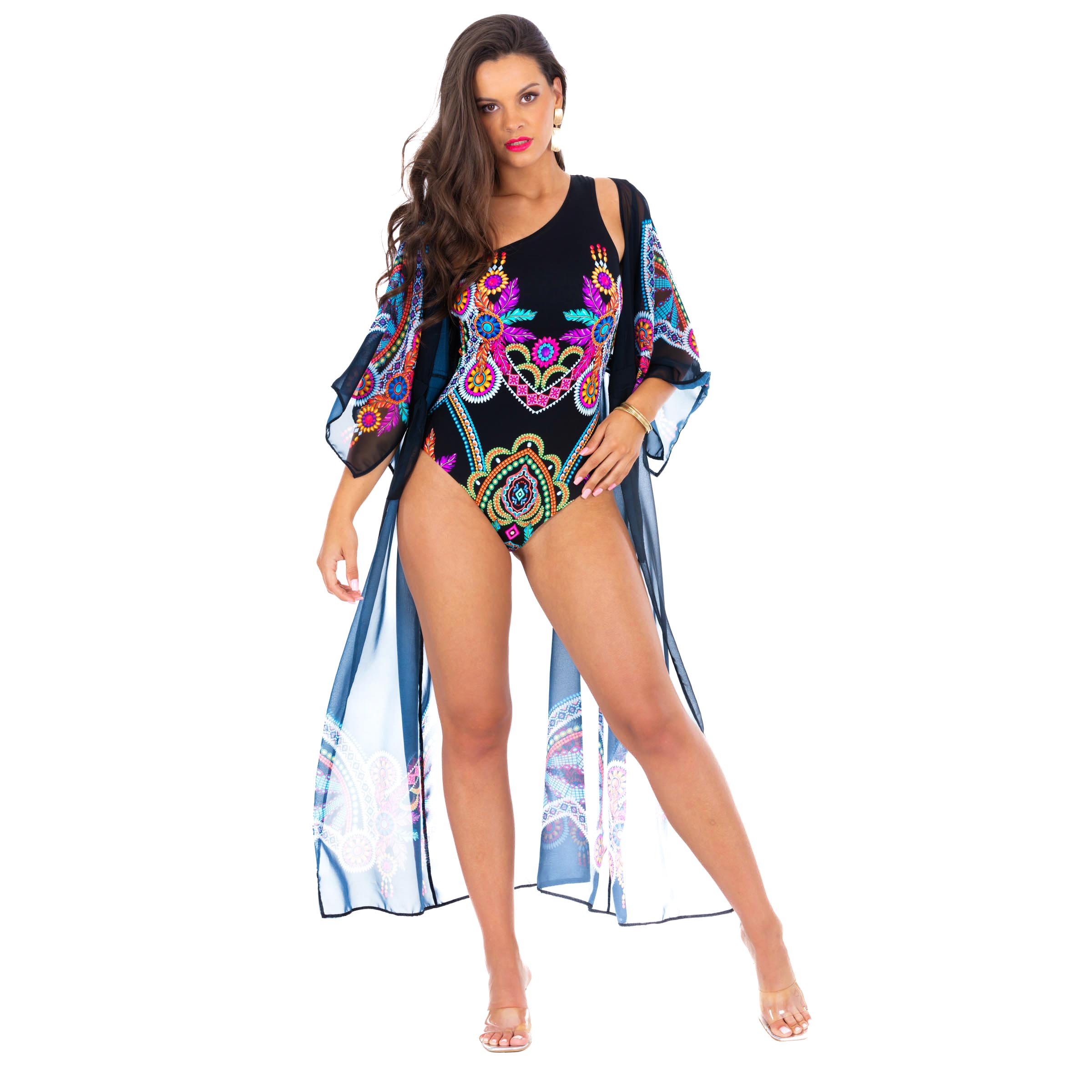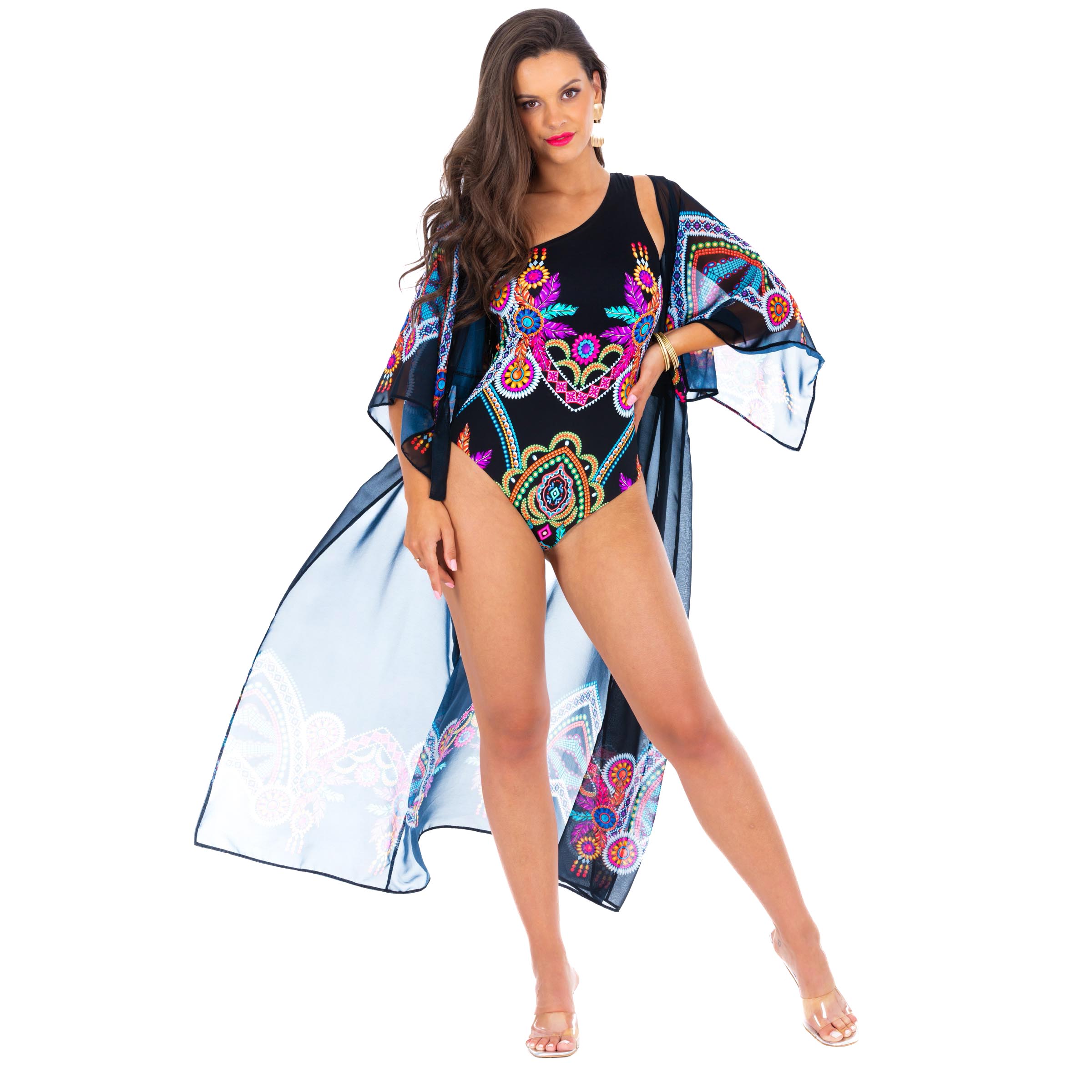 Długa narzutka plażowa Luna S od Lavel to doskonałe połączenie stylu boho chic z praktyczną ochroną przed słońcem. Wykonana z lekkiego i zwiewnego materiału, idealnego na lato, zapewnia komfort oraz chroni ramiona przed nadmiernym opalaniem. Czarna narzutka z kolorowymi wzorami boho dodaje niepowtarzalnego charakteru i wpisuje się w najnowsze trendy letnich akcesoriów plażowych.