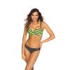 Strój kąpielowy Matylda jest idealny dla kobiet pełnych pasji, które nie lubią stać w miejscu. Seledynowo-stalowa kolorystyka elektryzuje. Dzięki zapięciu z tyłu i regulacji ramiączek zapewnia doskonałe podtrzymanie bez względu na sposób spędzania czasu. Biustonosz atrakcyjnie zbiera i unosi piersi, a delikatne marszczenia i ozdobny detal pośrodku sprawiają, że prezentuje się jeszcze okazalej. Oryginalny krój fig, z szeregiem pasków po bokach, fantastycznie eksponuje biodra.