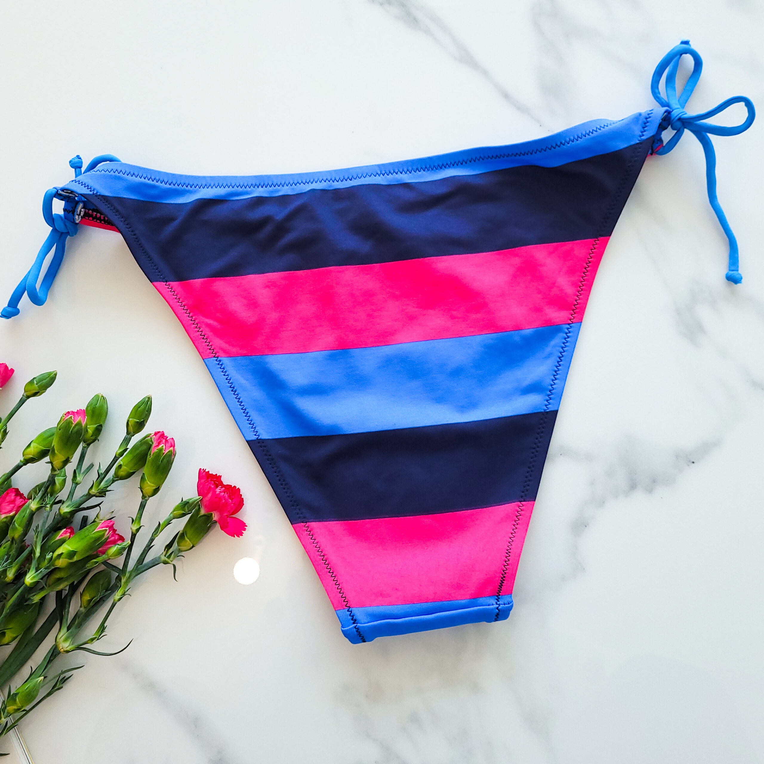 Majtki stroju kąpielowego Megan to wiązane modele, które gwarantują doskonałe dopasowanie do każdego typu sylwetki. Ich kształt oraz regulowane wiązanie nadają figurom kształt i dodają kobiecości. Wysoki stan majtek pięknie podkreśla kształt bioder i wysmukla talię, dodając sylwetce smukłości.