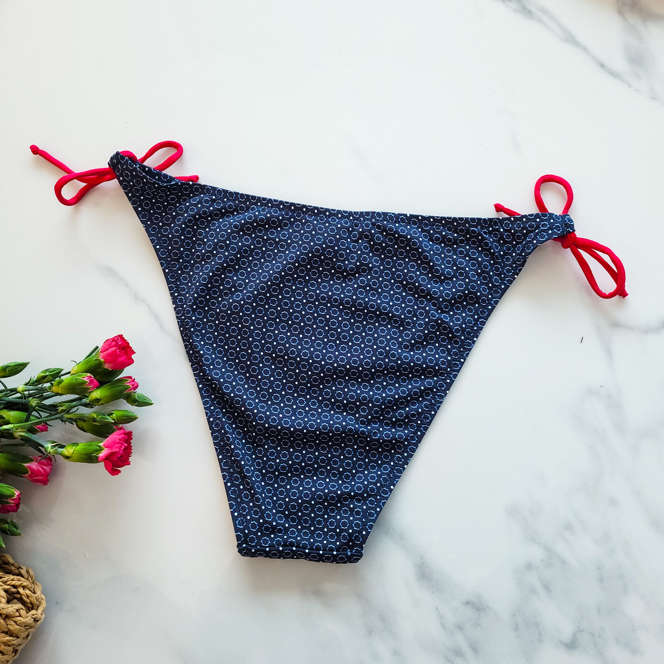 Majtki kostiumu są wyjątkowo atrakcyjne dzięki eleganckiemu wiązaniu z boku. Regulowane wiązania na majtkach pozwalają na perfekcyjne dopasowanie stroju do Twojej sylwetki i gwarantują, że kostium nie przesunie się podczas pływania lub bawiąc się na plaży.