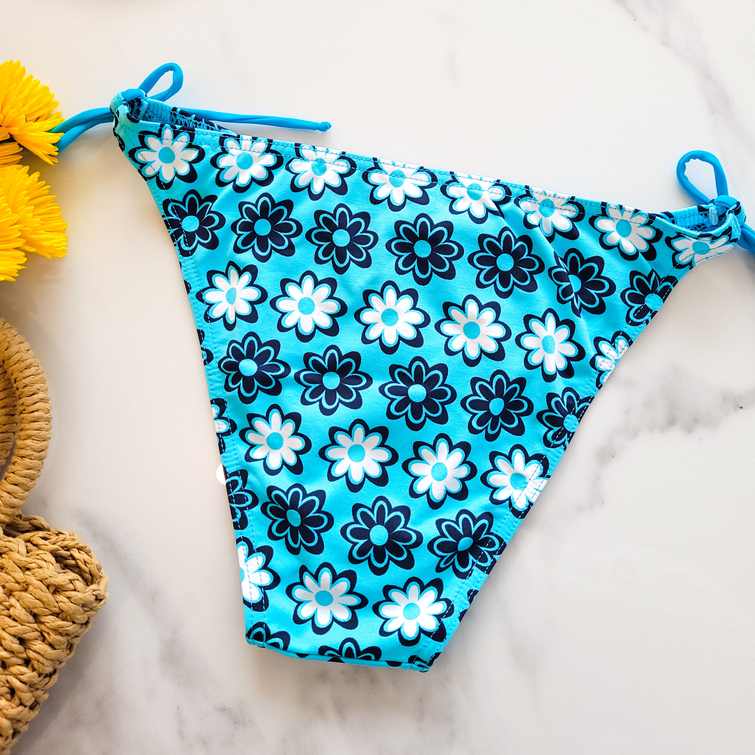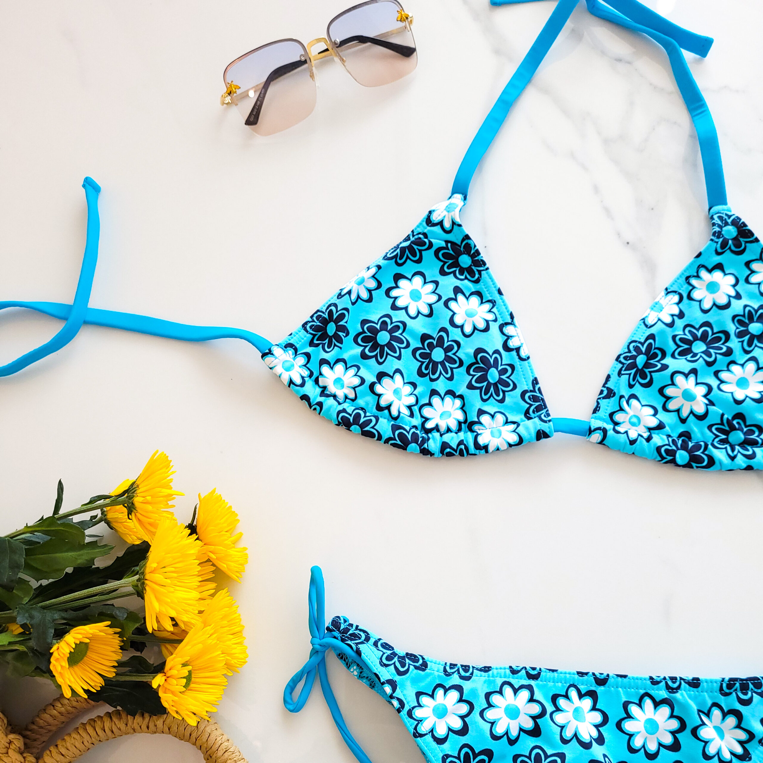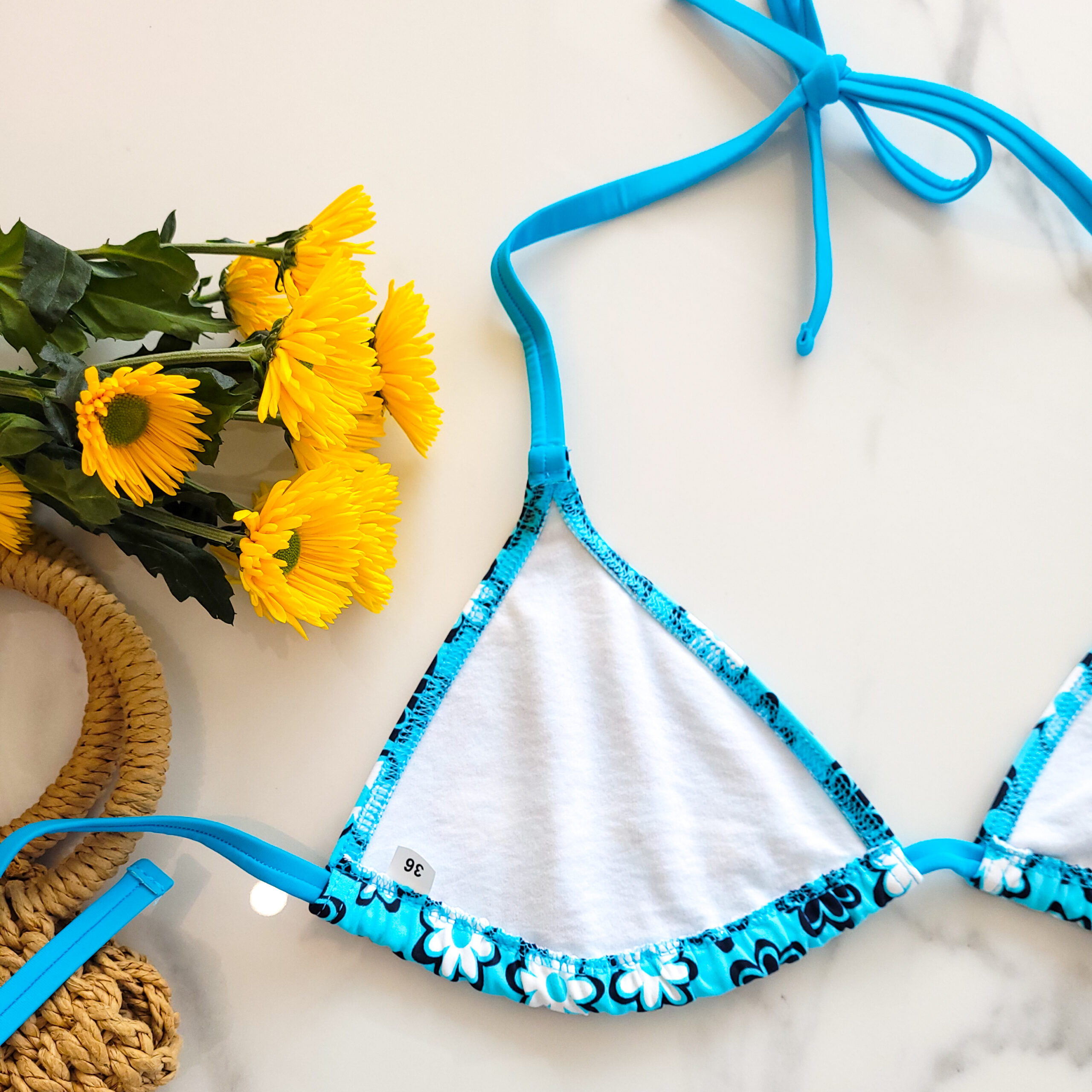 Megan / A4 – niebieski dwuczęściowy kostium kąpielowy z miękką miseczką i wiązanymi majtkami