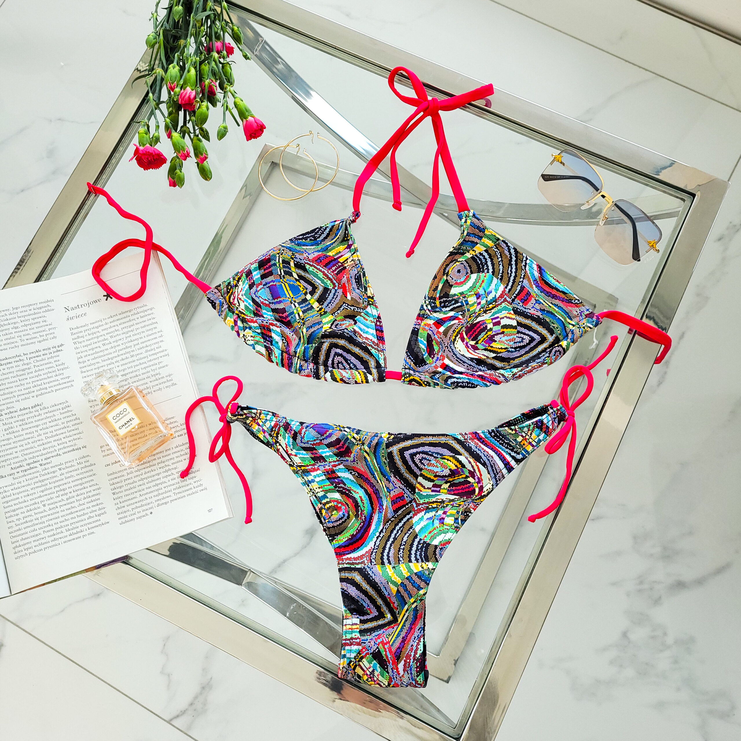 Odważnie wyprofilowany strój kąpielowy Megan to propozycja dla kobiet, które lubią bawić się stylem. Możliwość wiązania majtek na bokach pozwala na idealne dopasowanie do Twojej sylwetki, a jednocześnie nadaje im unikalnej zabawy. Górna część stroju nawiązuje do klasycznego bikini z miękkimi miseczkami, które zapewniają komfort i swobodę. Złota ozdoba pomiędzy piersiami dodaje wyrafinowanego blasku, podkreślając Twoją kobiecość. To strój, który pozwala na swobodę ruchów, ale jednocześnie skupia wzrok na Twojej sylwetce.