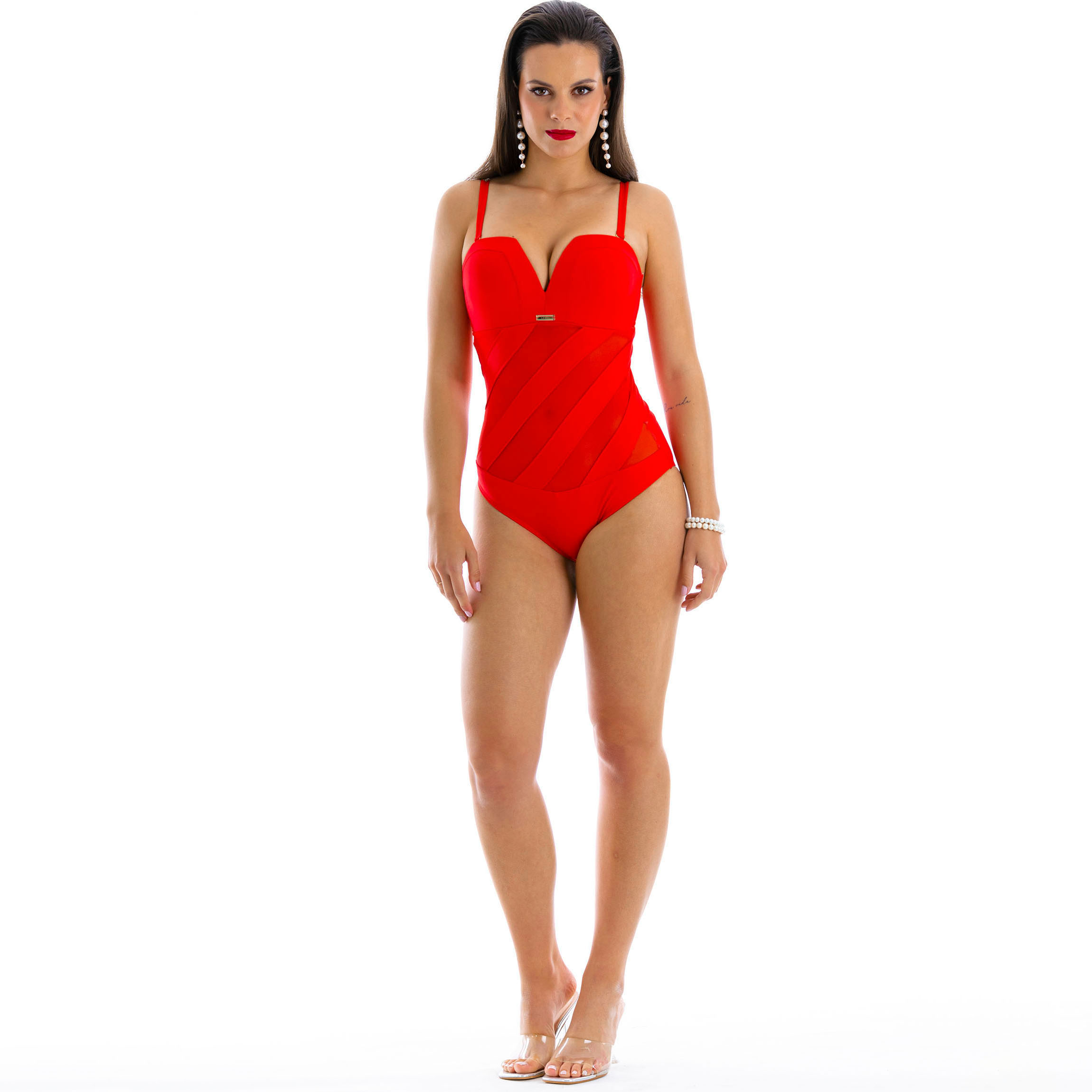 Strój kąpielowy Milena z Lavel to idealne połączenie bezpieczeństwa z seksapilem. Solidne zapięcie na plecach gwarantuje, że strój pozostanie na swoim miejscu nawet podczas aktywnych ruchów. Delikatne marszczenia z przodu nadają sylwetce kształt, a seksowna siateczka dodaje subtelnej elegancji. Regulowane ramiączka umożliwiają dostosowanie stroju do indywidualnych potrzeb, a czerwona barwa przyciąga wzrok i dodaje energii plażowemu wyglądowi.