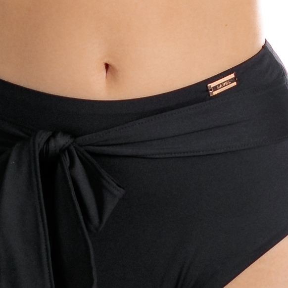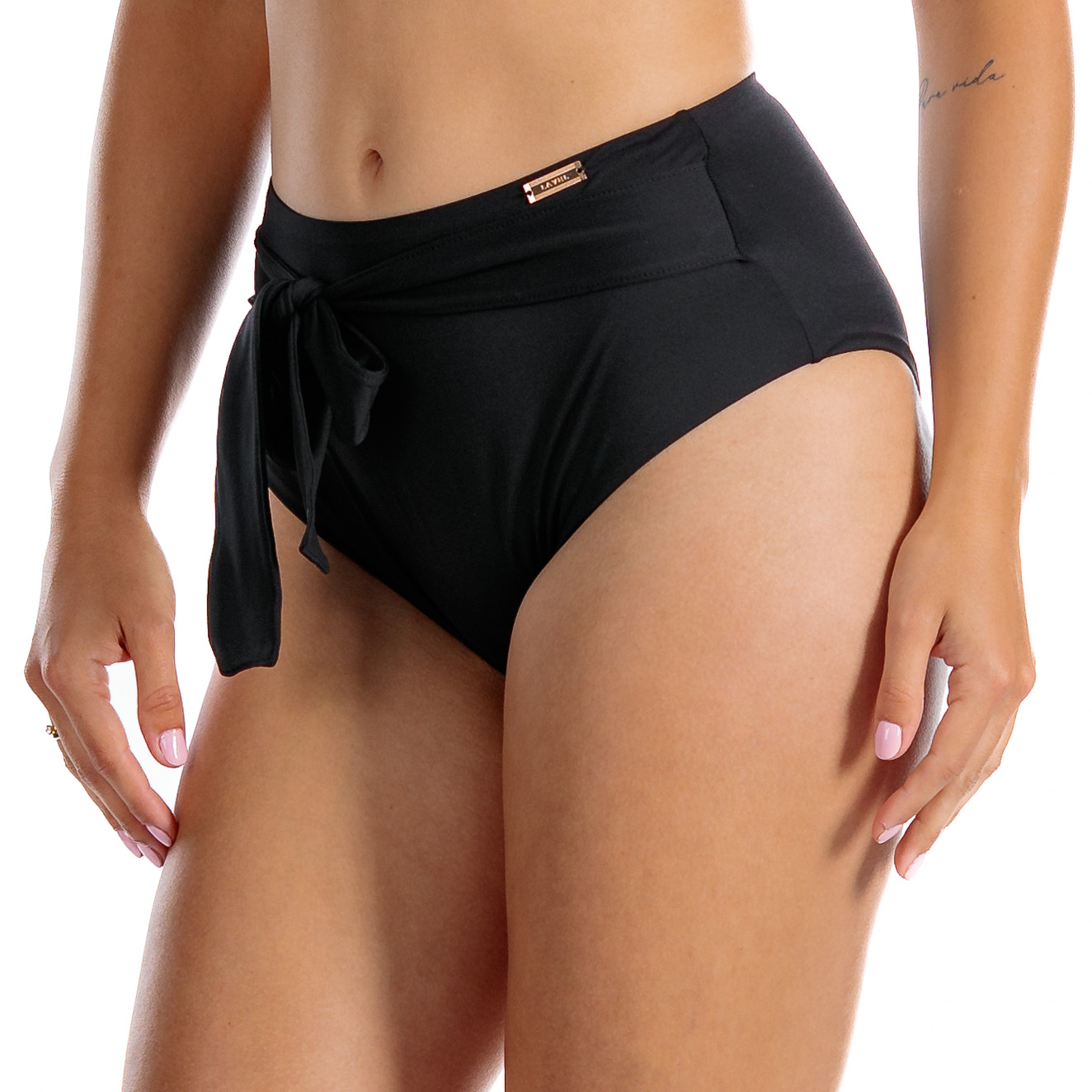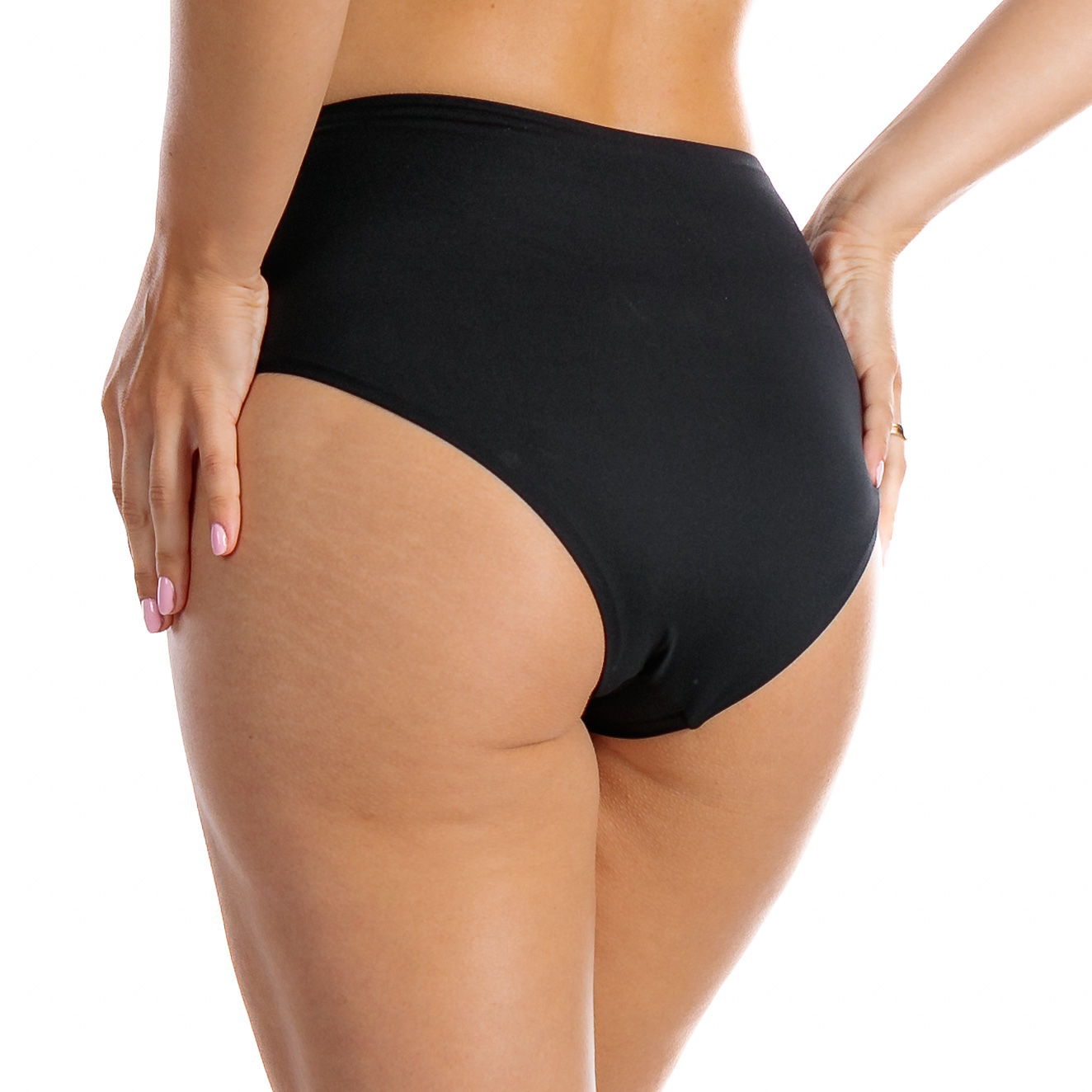 Te wyjątkowe majtki kąpielowe zostały zaprojektowane z myślą o różnorodnych typach sylwetek. Podwójna podszewka gwarantuje pełen komfort i pewność siebie, a wysokie wykończenie w talii zapewnia doskonałe podtrzymanie i modelowanie. Kolor czarny dokskonale komponuje się z każdą górą, dzięki tem możesz tworzyć personalizowane zestawy.
