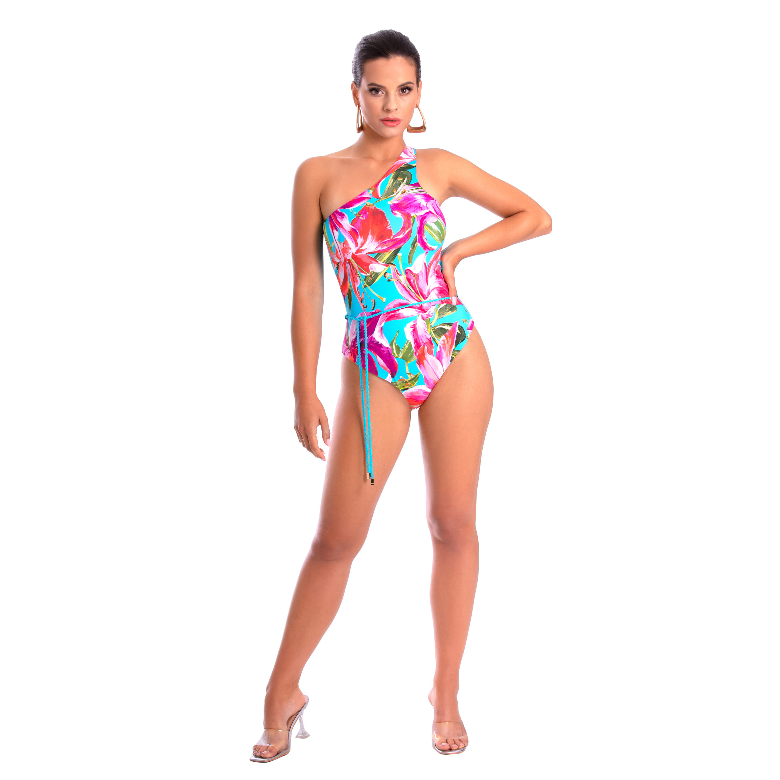 Monika / C4 – jednoczęściowy kostium kąpielowy na jedno ramię z miską piankową w kwiaty