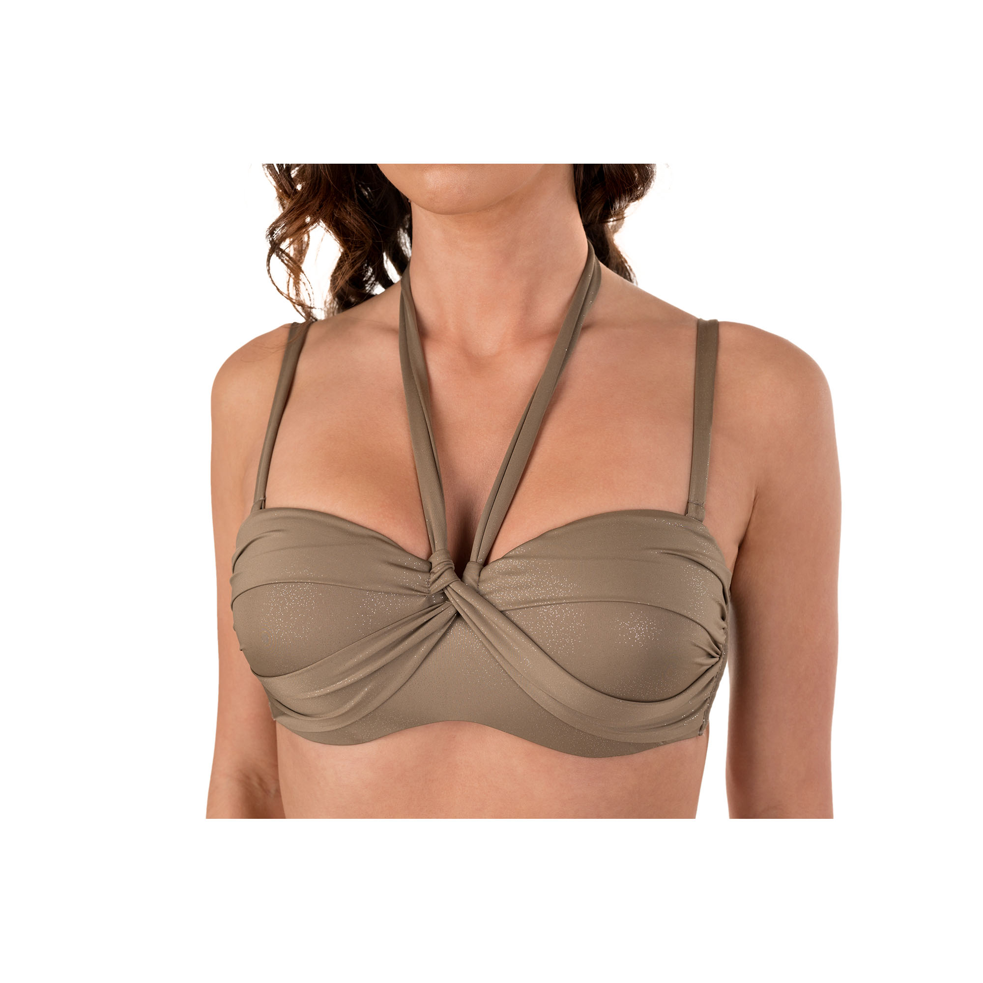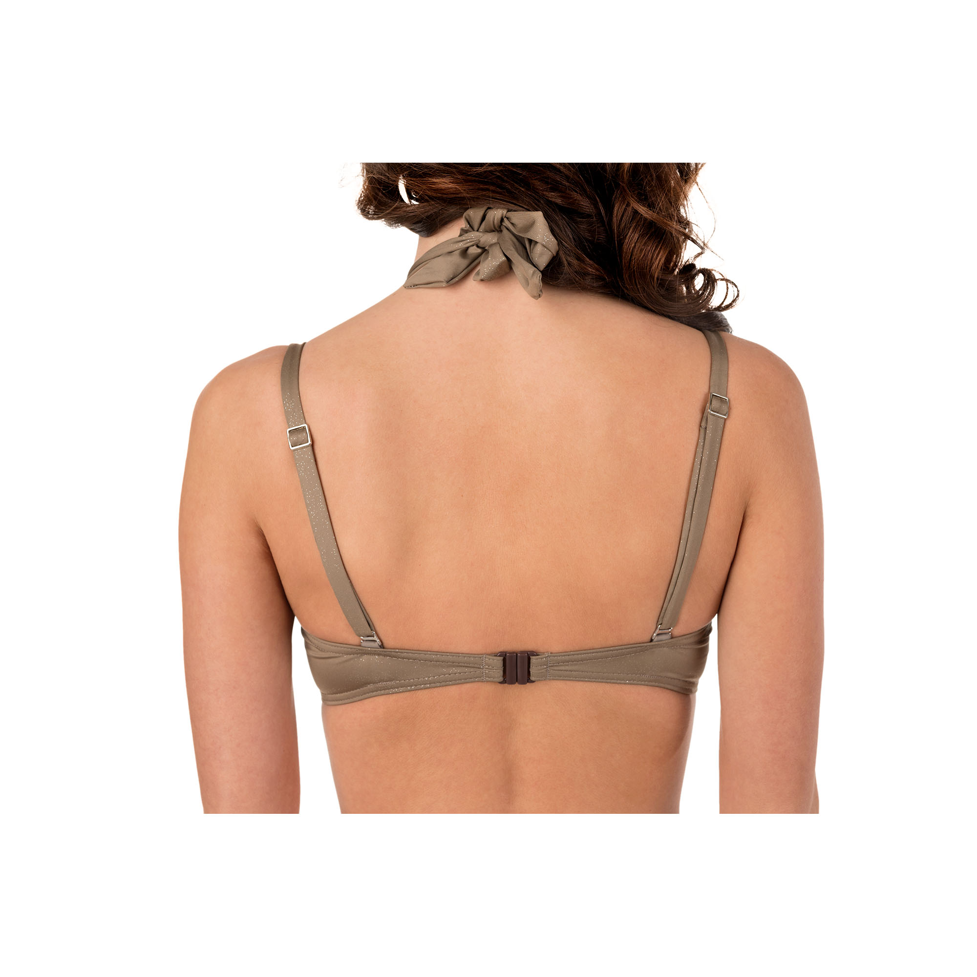 Nadine w tej wersji kolorystycznej to uniwersalny, ale również bardzo indywidualny wybór, na który stać tylko kobiety, które wiedzą czego chcą. Na pewno jest również bardzo praktyczny. Efekt push-up delikatnie podniesie twój biust, fiszbiny, usztywniana miseczka oraz regulowane ramiączka zapewnią jego idealne położenie i zapobiegnie przemieszaniu się nawet podczas uprawiania sportów plażowych, czy wodnych. Ramiączka możesz również odpiąć, zawiązać z tyłu i równomiernie opalić ramiona.
