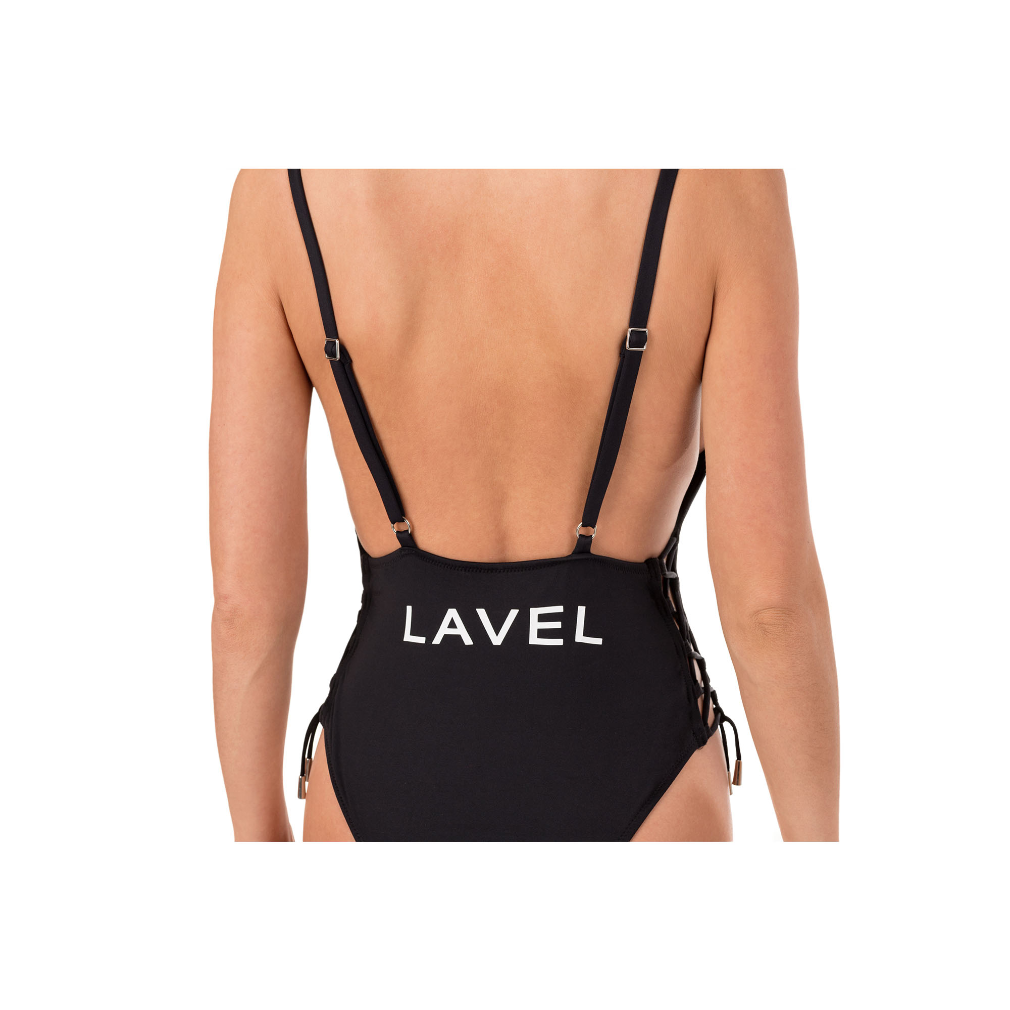 Jednoczęściowy strój może być równie seksowny jak dwuczęściowy, o czym przekonuje model Pamela L. Miękkie wykończenie bez miseczek swobodnie układa się na biuście, a głębokie wcięcie uwydatnia dekolt. Krój zakrywa brzuch i wyszczupla sylwetkę. Odsłania plecy oraz eksponuje talię wraz z biodrami, wykorzystując misterne i zmysłowe wiązanie. Wysoko wycięta dolna część kostiumu optycznie wydłuża nogi. To na pewno nie jest strój dla skromnych kobiet.