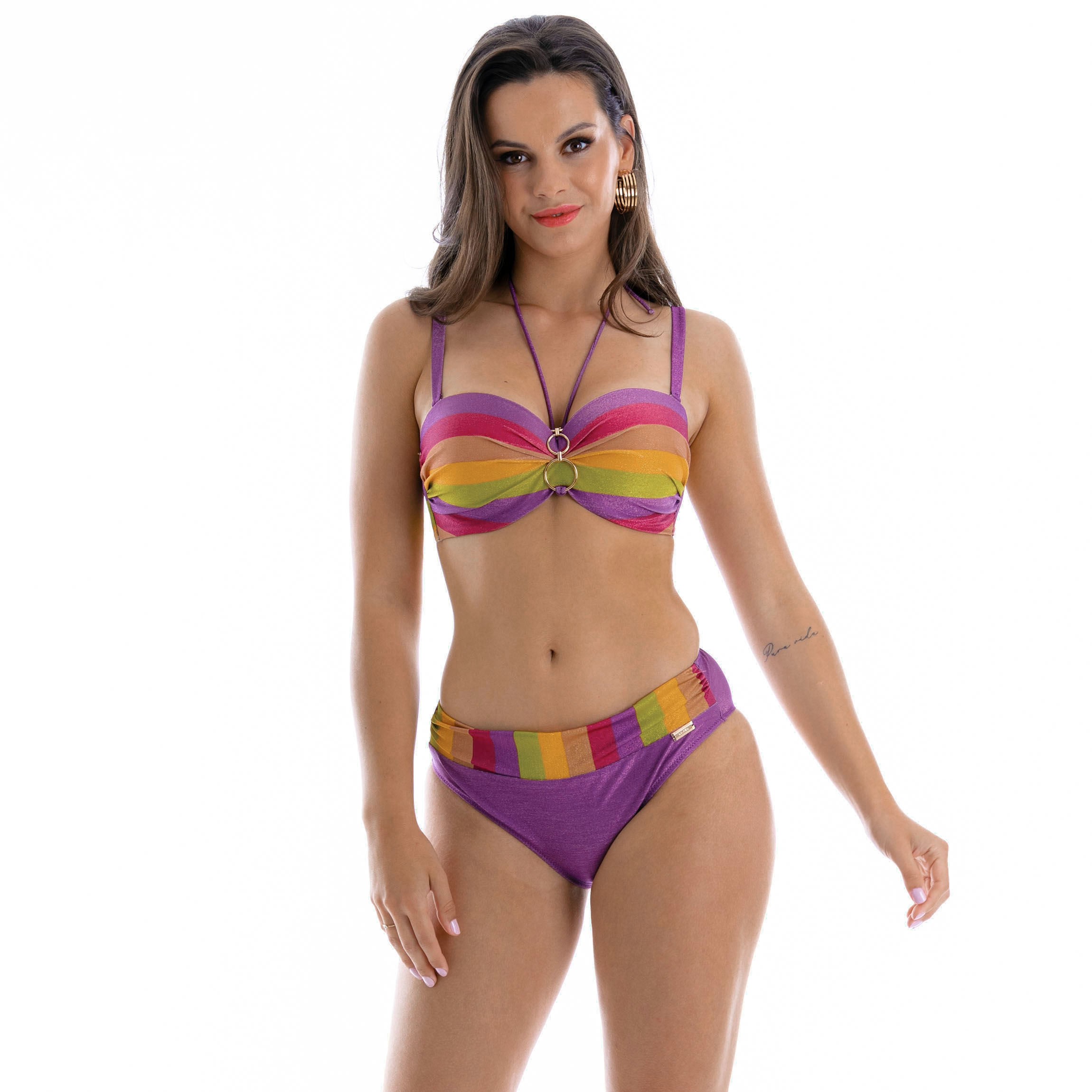 Panties v.C to majtki kąpielowe, które zachwycają subtelnym połączeniem komfortu i modnego designu. Fioletowy odcień, wzbogacony o połyskujące drobinki, dodaje im wyjątkowego blasku, a klasyczny krój z szerokim pasem idealnie komponuje się z różnymi górami od bikini, tworząc spójną i elegancką całość.