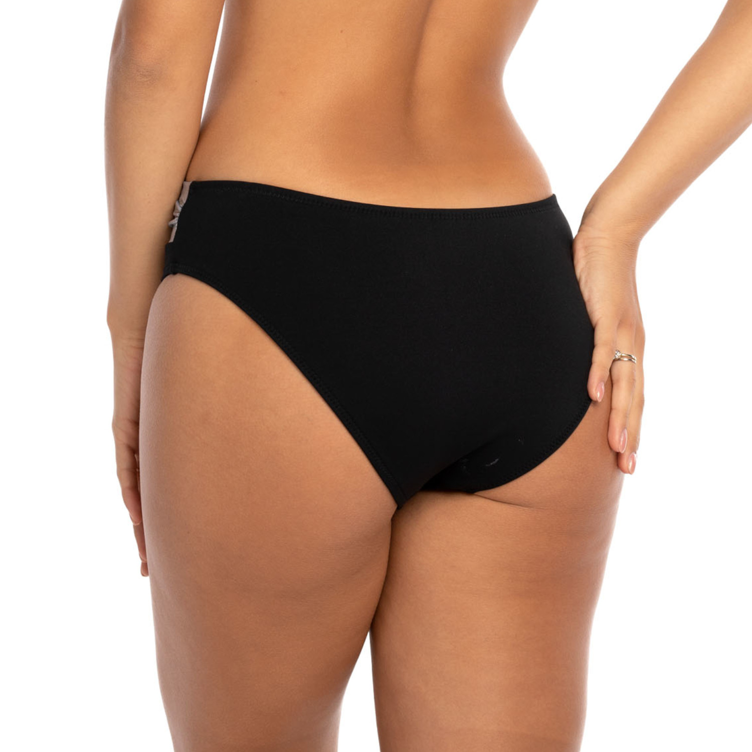 Czarny jest ulubionym kolorem wielu kobiet, niezależnie od sytuacji. Elegancki, subtelny i zawsze na czasie, jest idealny także na plażę. Majtki plażowe Panties Z vC to propozycja dla pań, które cenią styl i komfort. Ich głęboki odcień czerni jest odporny na działanie słonej lub chlorowanej wody oraz promieni słonecznych, więc nie musisz martwić się, że stracą swoją intensywność.