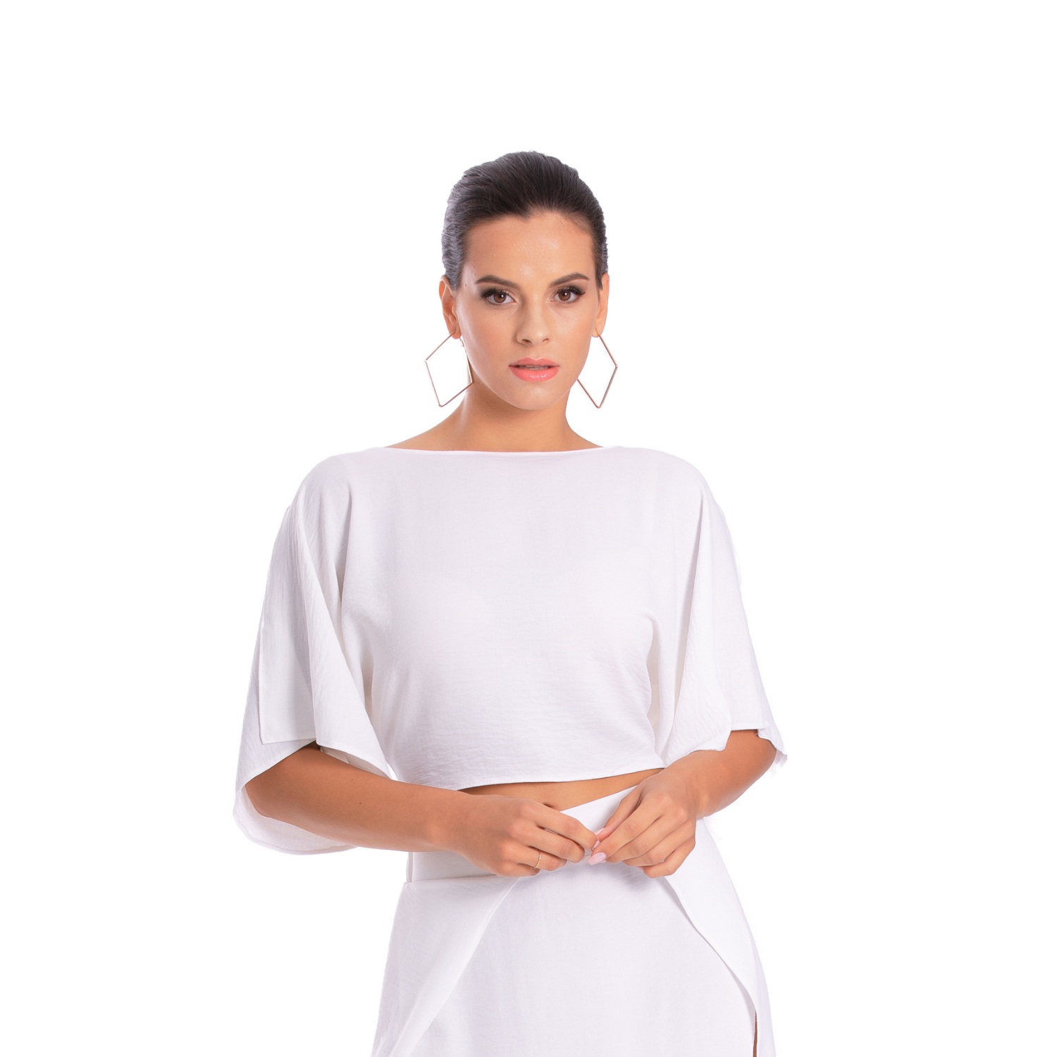 Rita Top / R7 – biała narzutka plażowa wiązana na plecach