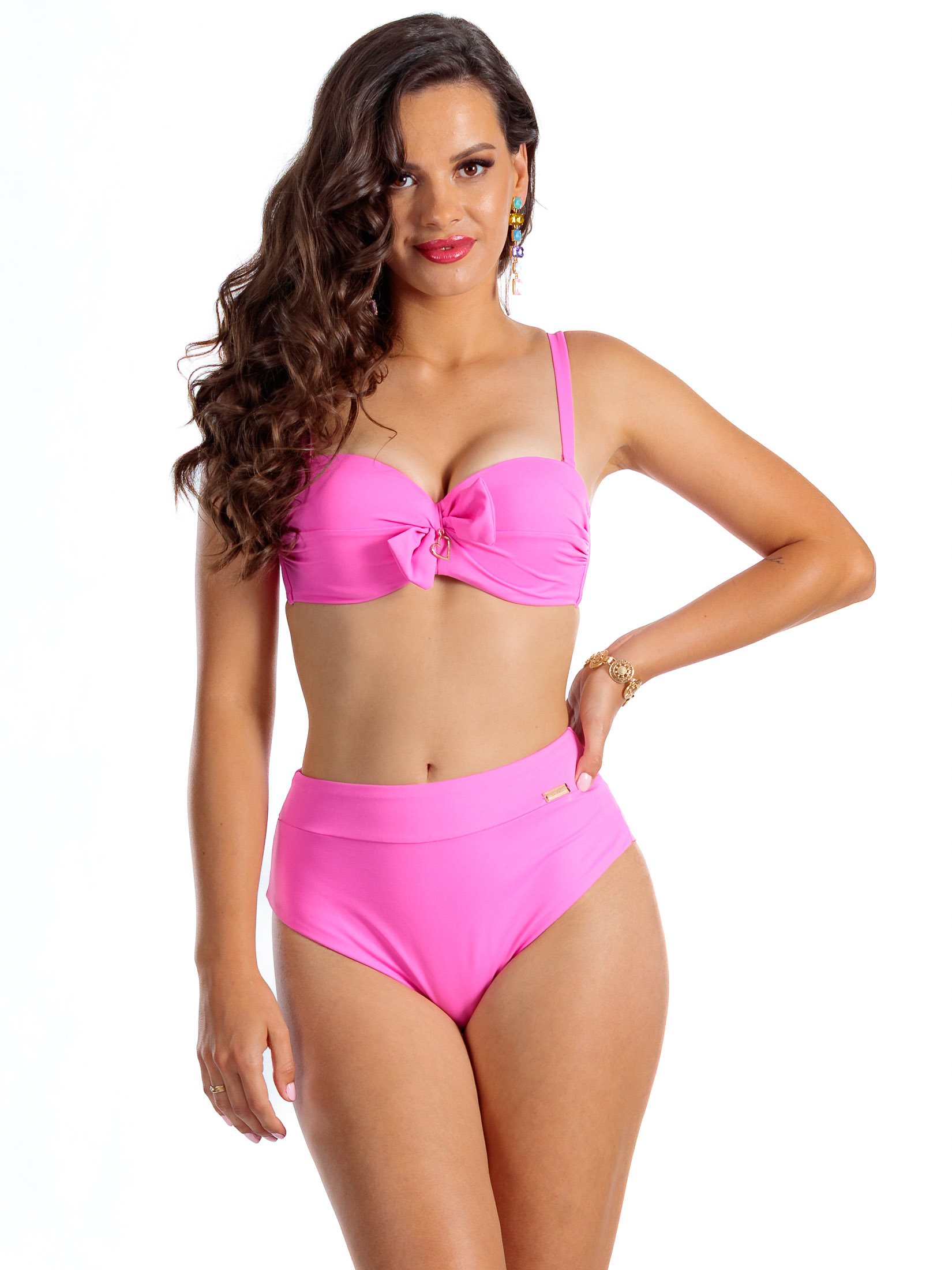 To doskonała baza do stworzenia swojego wymarzonego dwuczęściowego stroju kąpielowego. W naszej kolekcji znajdziesz idealnie dopasowane majtki w tym samym odcieniu różu, z podobnymi zdobieniami. Każdy element został starannie przemyślany, by tworzyć spójną całość – jak perfect match na plaży!